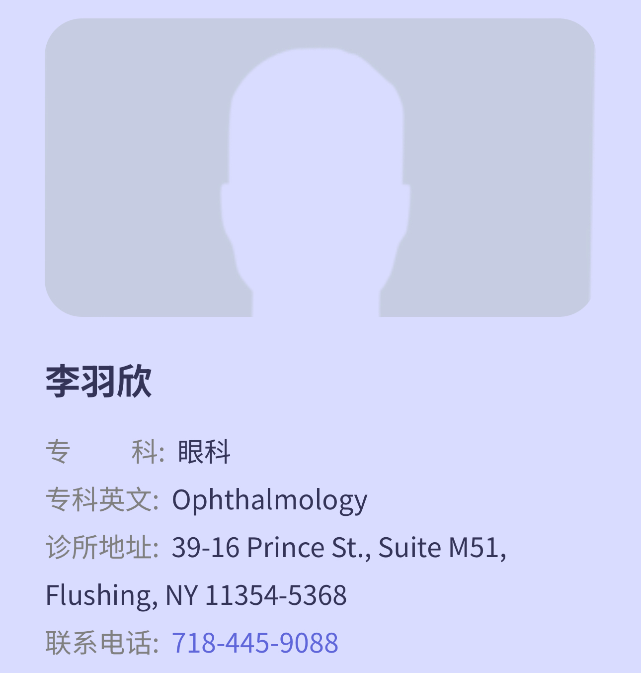 李羽欣眼科医生法拉盛 纽约 李羽欣眼科医生推荐 李羽欣八大道眼科医生 唐人街眼科医生推荐 李羽欣医生(Li, Joan)是纽约眼科(Ophthalmology)华人医生, 现可接收新患者。