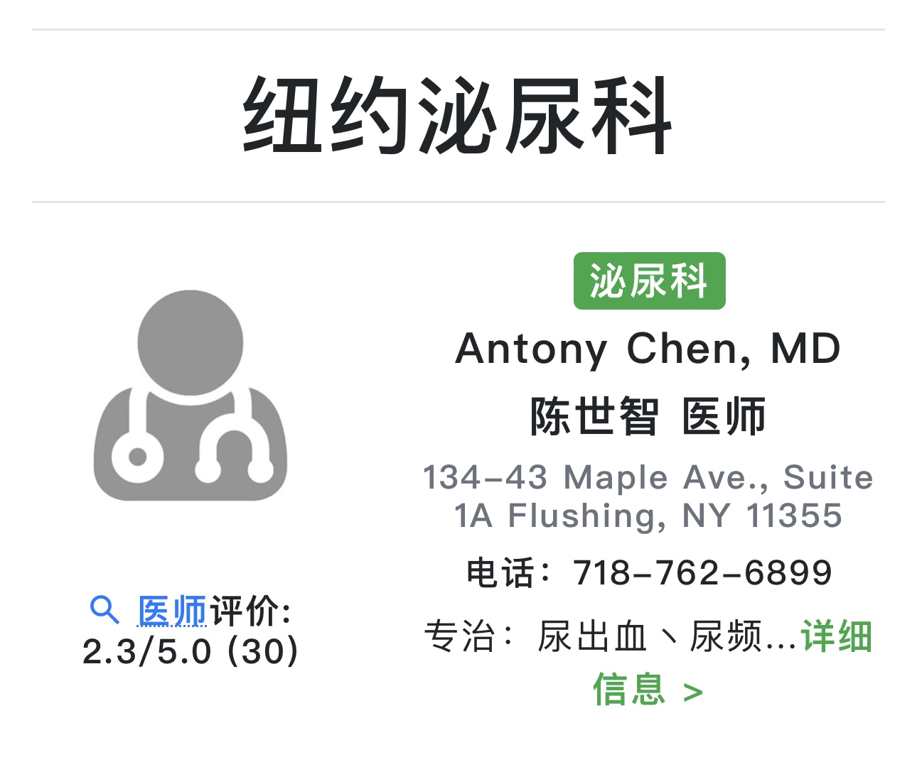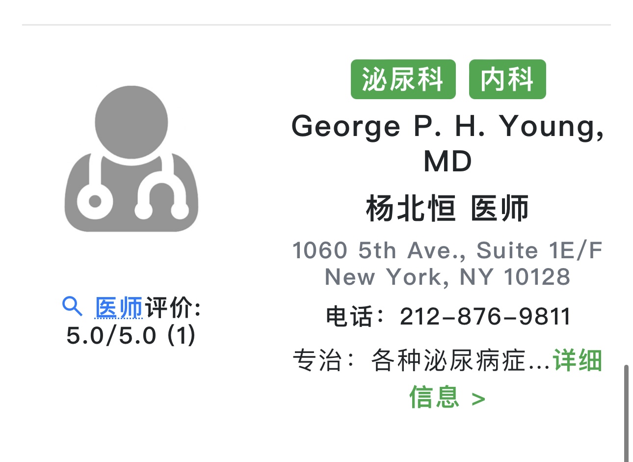 杨北恒泌尿科医生法拉盛 杨北恒泌尿科医生推荐 纽约杨北恒最好的泌尿科医生泌尿科医生唐人街泌尿科医生布鲁克林 纽约市行业认证男女泌尿科医师——纽约市泌尿专家纽约市男女泌尿科医疗护理资深泌尿科医师纽约泌尿中心的泌尿医师经过行业认证准备好为您提供世界级泌尿系统医疗护理服务。我们的理念是为每位患者提供个性化治疗手段,配合最先进的医疗知识和创新。我们擅长为有复杂泌尿系统问题的男女提供医疗服务。我们也为患者提供二次和三次诊断意见, 如您不满足于教科书式的治疗手段,需要个性化的泌尿系统医护方案,请联系我们。在纽约泌尿专家中心,我们邀请您体验更高标准的泌尿系统医疗护理。从机器人手术到膀胱癌和前列腺癌最有效的治疗手段,我们为患者提供的医疗服务质量都超出国家标准。如有任何问题,请随时联系我们。我们也为国际患者和非本地区患者在诊室提供服务。为什么纽约泌尿专家中心是正确的选择行业认证泌尿科医师基于前沿医学研究采取循证医学专业培训泌尿科医师获行业和国际高度认可的泌尿科医师纽约地区最佳泌尿科室之一纽约市行业认证泌尿科医师