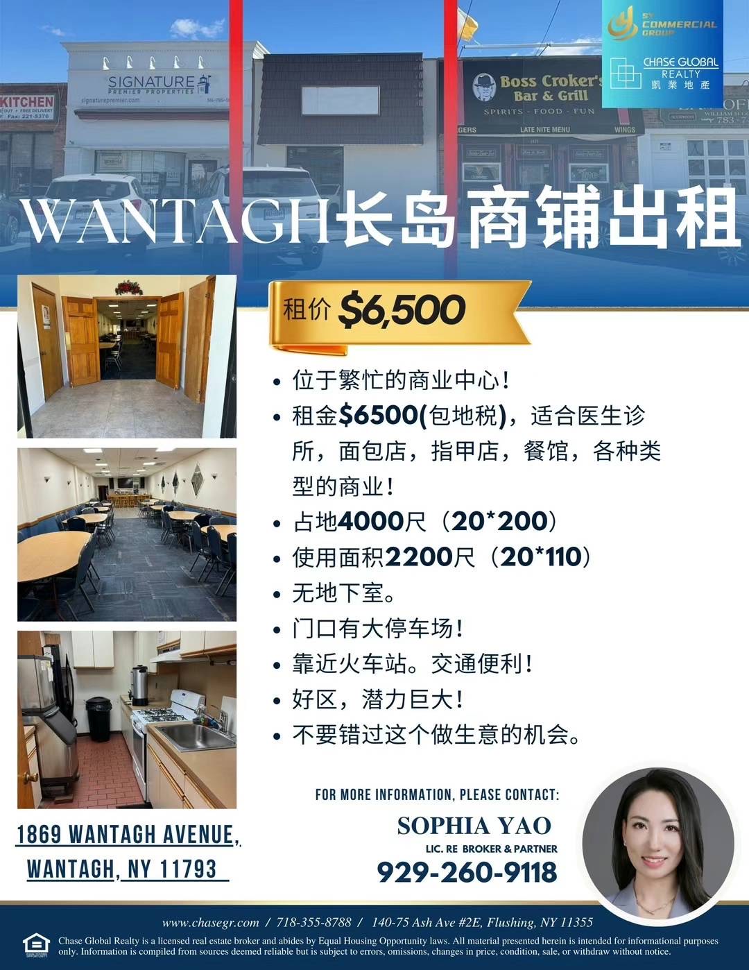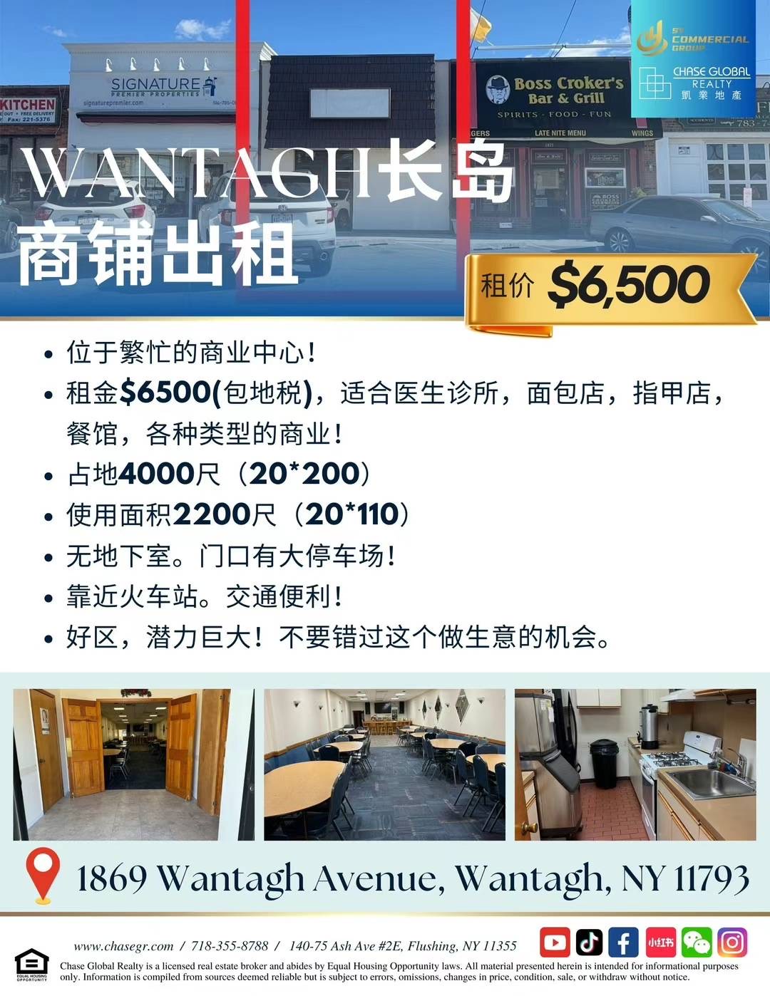 🔥 凯业地产Wantagh长岛商铺空店出租 🔥💰租价$6,500💰📍 1869 Wantagh Avenue, Wantagh, NY 11793