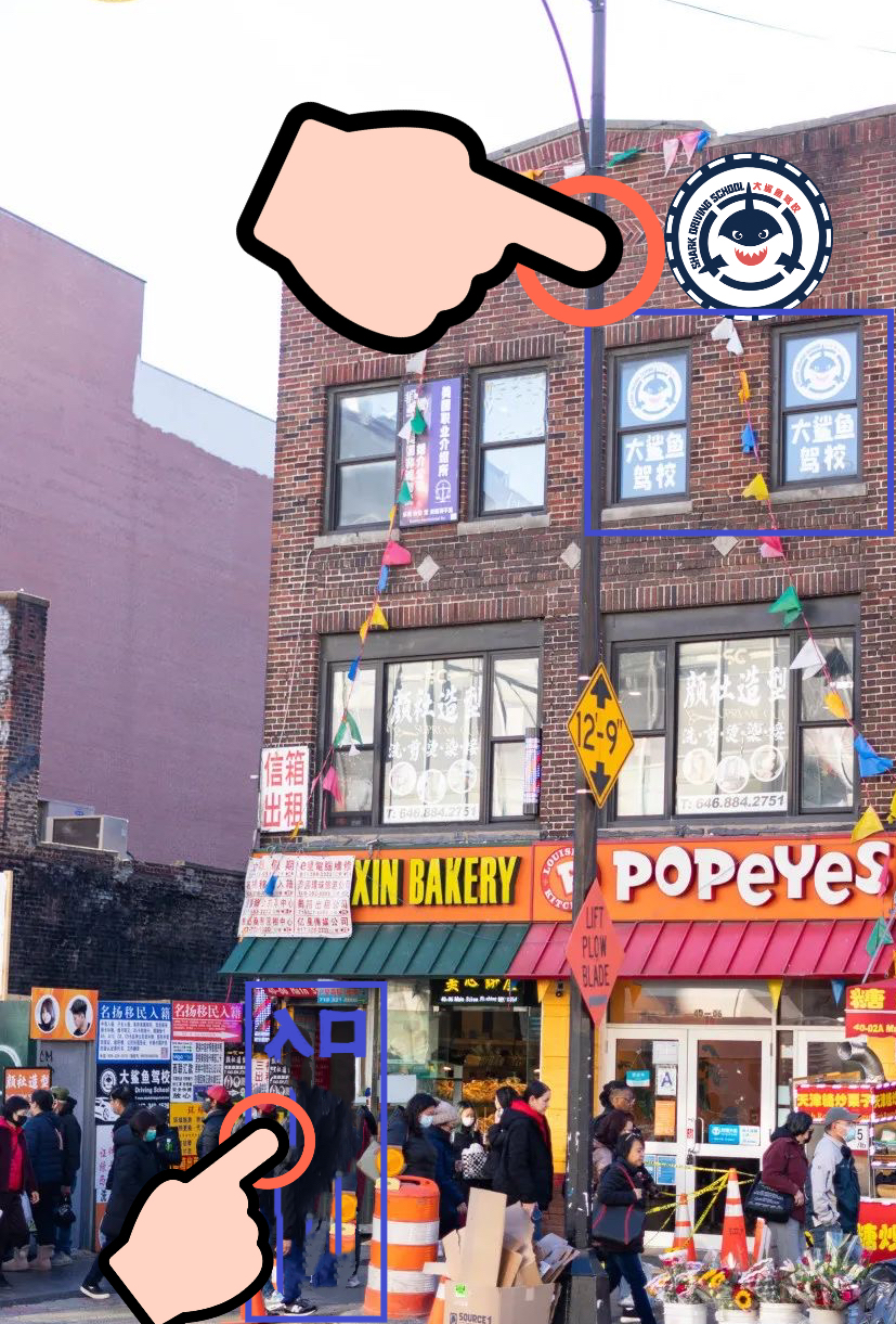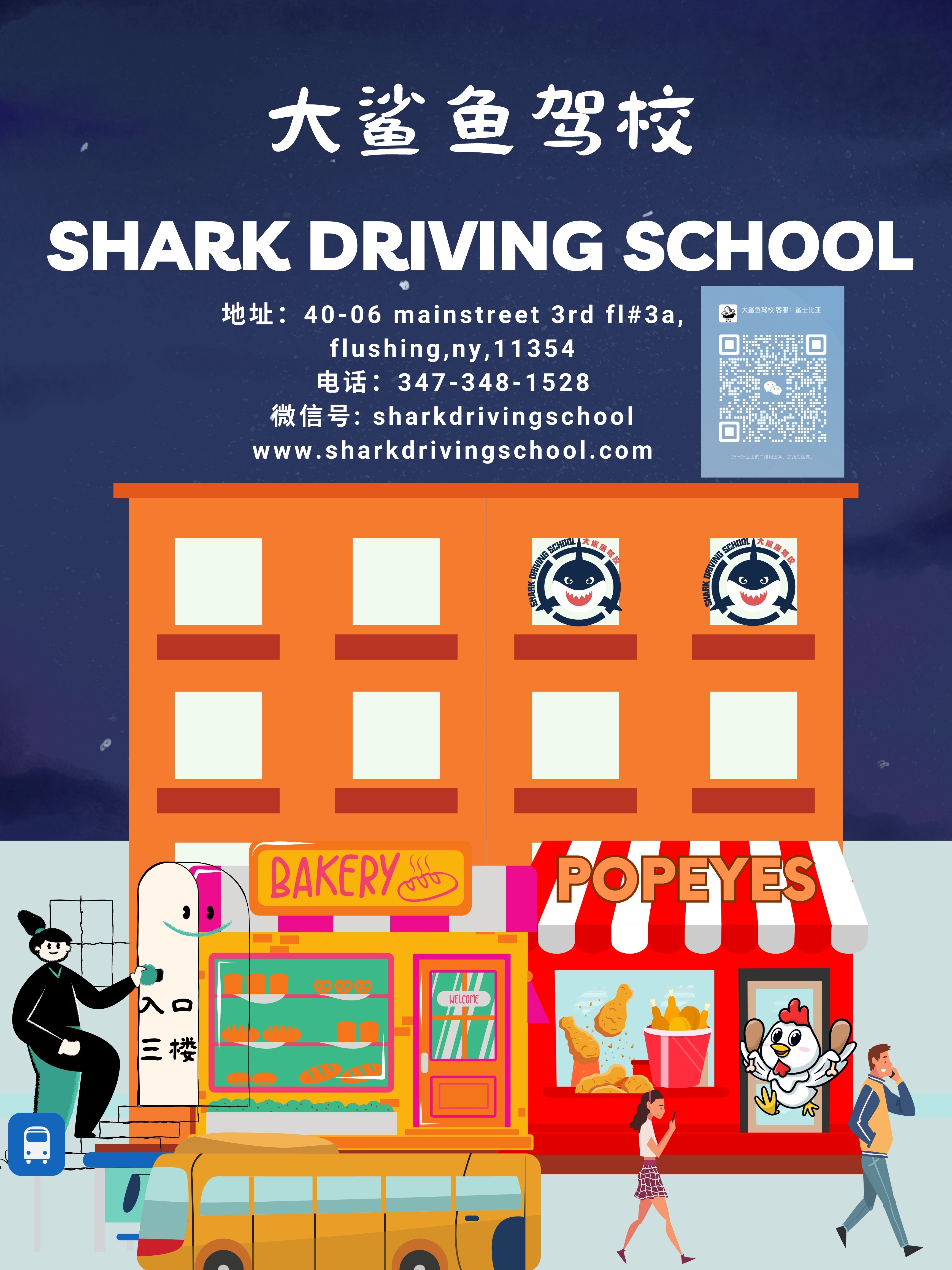 大鲨鱼驾校,坐落于纽约法拉盛繁华商圈中心,交通便利,地理位置优越。在mainstreet的popeyes炸鸡店的楼上3楼(从美心饼屋旁边入口上楼)……地铁口上来1分钟就可以轻松到达驾校!!!无论您是上班族还是学生党,都可以轻松找到我们。
