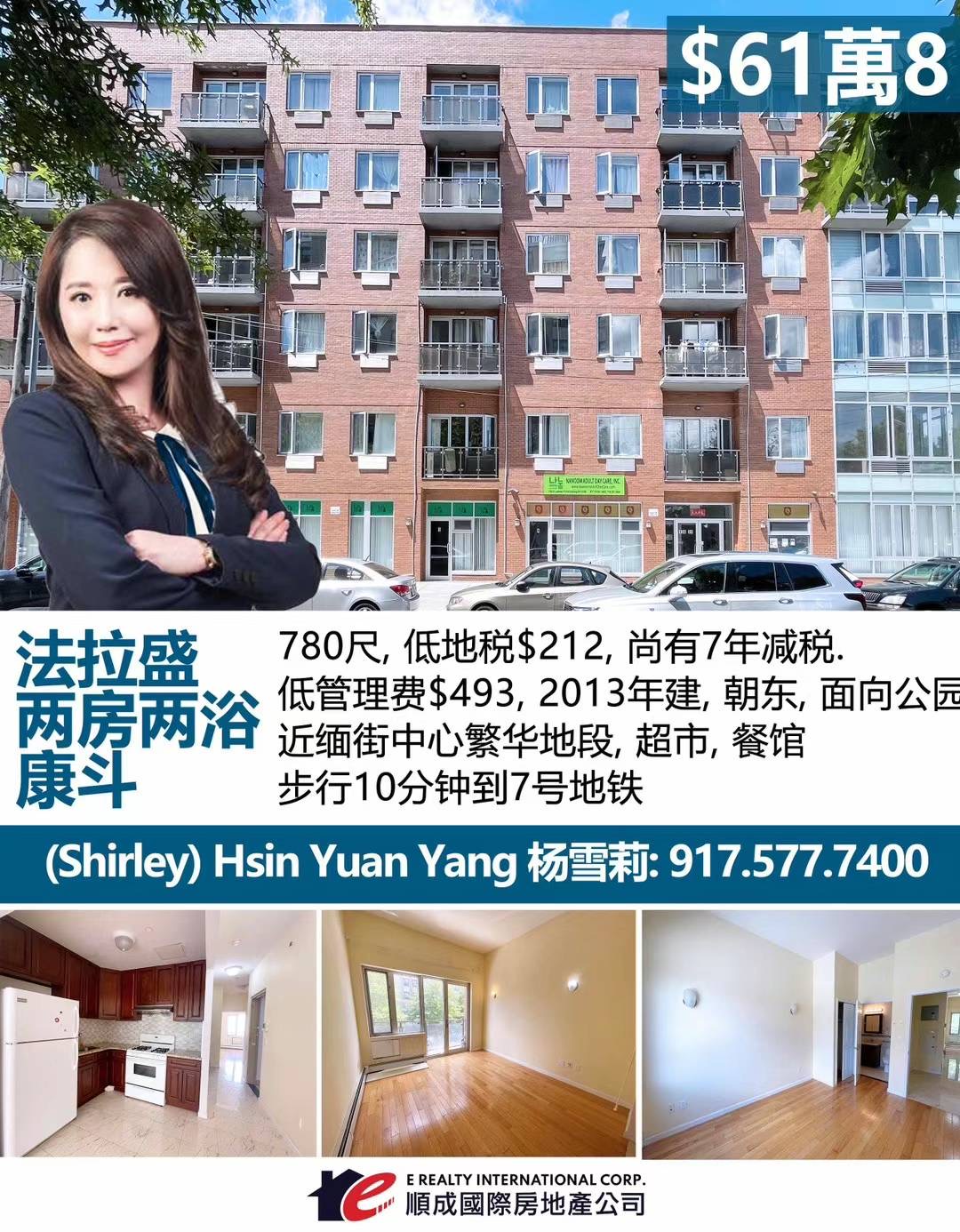 Flushing纽约法拉盛豪华康斗出售Flushing NY Luxury Condo For Sale新上市法拉盛高档康斗预售 🎉新上市法拉盛大2 房2 浴朝東有陽台,780 尺 保養一流 高樓有景有電梯 尚有7 年減稅 售$618,000 可步行地鐵 有興趣請Call Shirley 楊雪莉 順成房地產646-688-8998