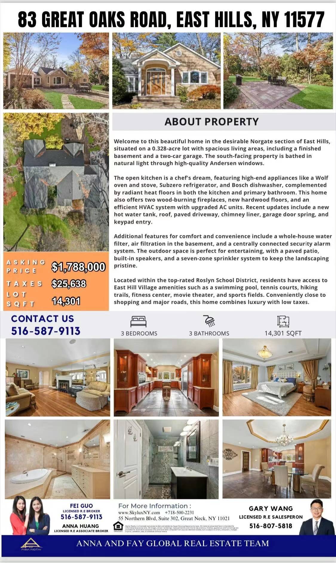 Long Island East Hils纽约长岛东山房子出售East Hils NY新上市长岛东山房屋出售周末公展 Weekend Open house: 周六 12:00pm-2:00pm周日 12:00pm-2:00pm🆕新上市🏡