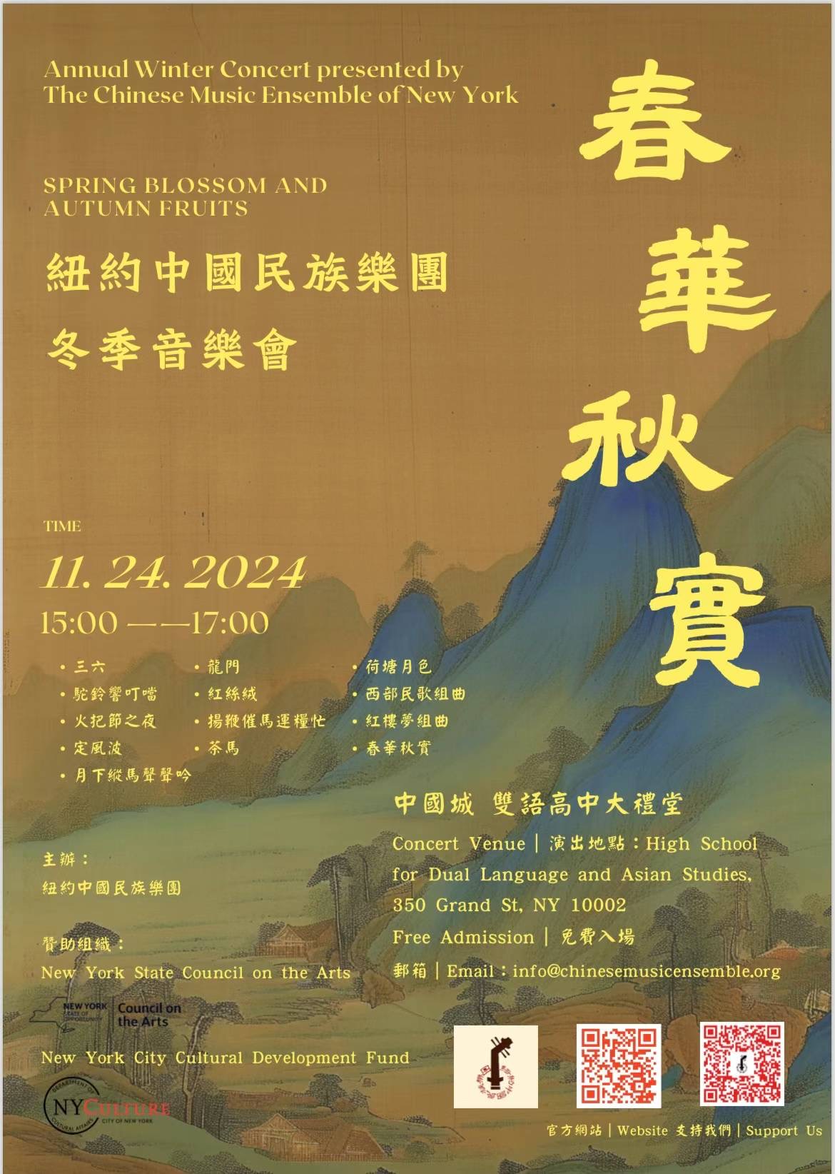5️⃣11/24 纽约中国民族乐团冬季音乐会~VIP seat 喊我~