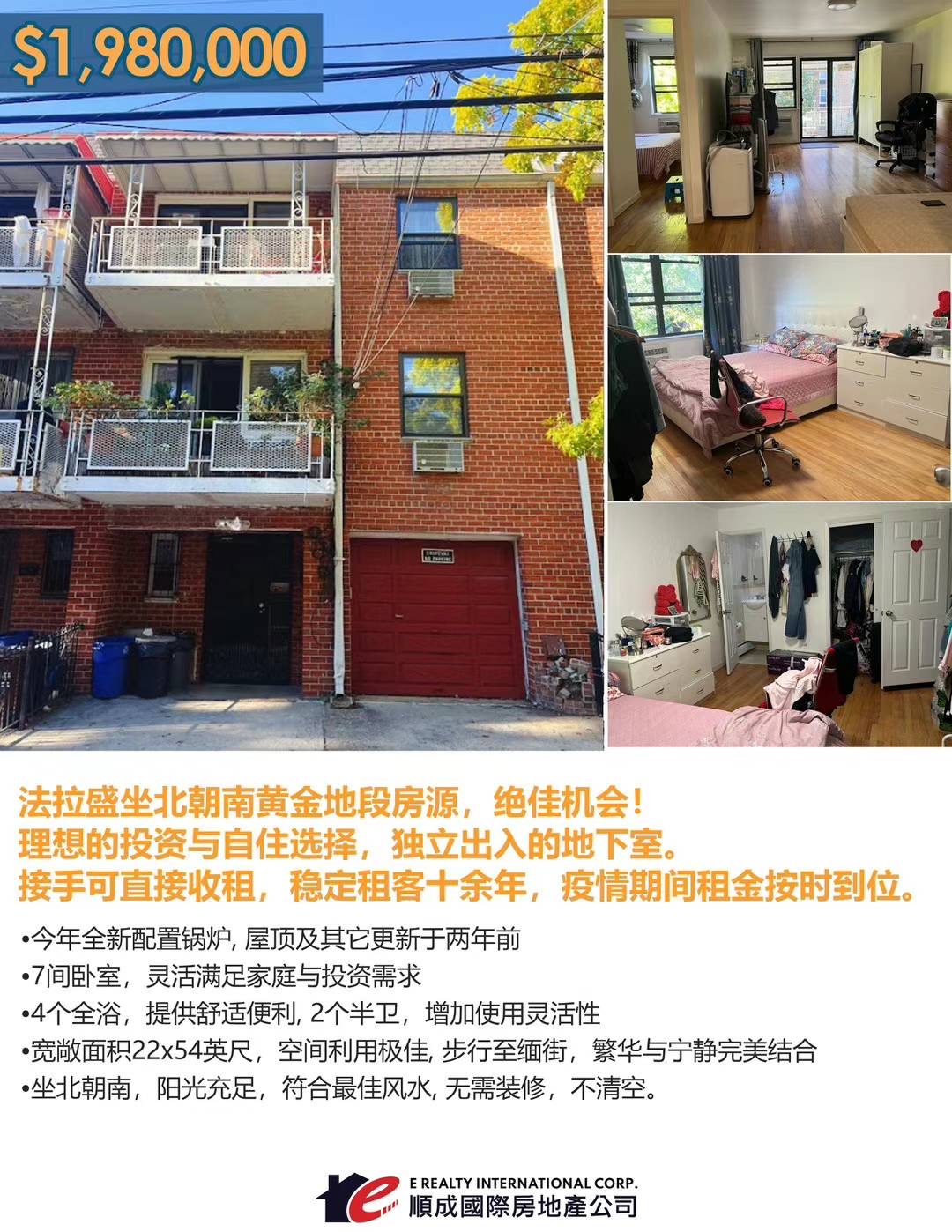 Flushing纽约法拉盛房屋出售 Flushing NY House For Sale新上市法拉盛房子出售买卖 独家代理🌷坐北朝南法拉盛中心黄金地段稀缺房源,机会难得!需接受现况!非诚勿扰!请提前预约:提供资金证明!理想投资与自住的完美之选!独立出入的地下室,接手即收租,十余年稳定租客,按时交租,疫情期间稳如磐石!