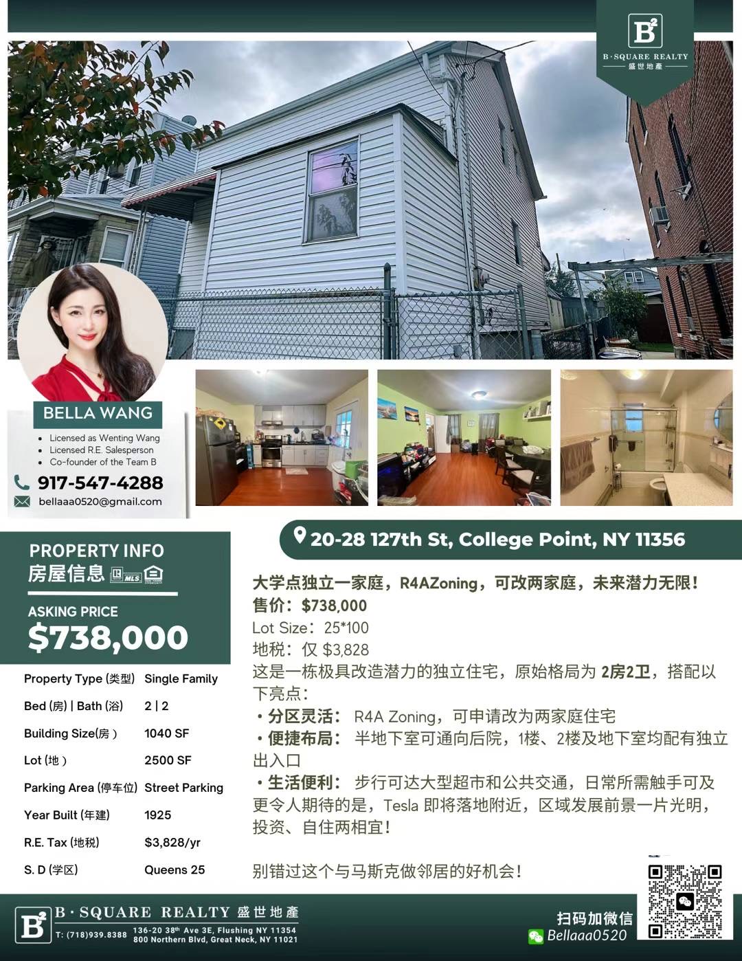 更令人期待的是,Tesla 即将落地附近,区域发展前景一片光明,投资、自住两相宜!如需更多信息或预约看房,请立即联系:Bella Wang专业纽约房地产经纪人📞 电话:917-547-4288