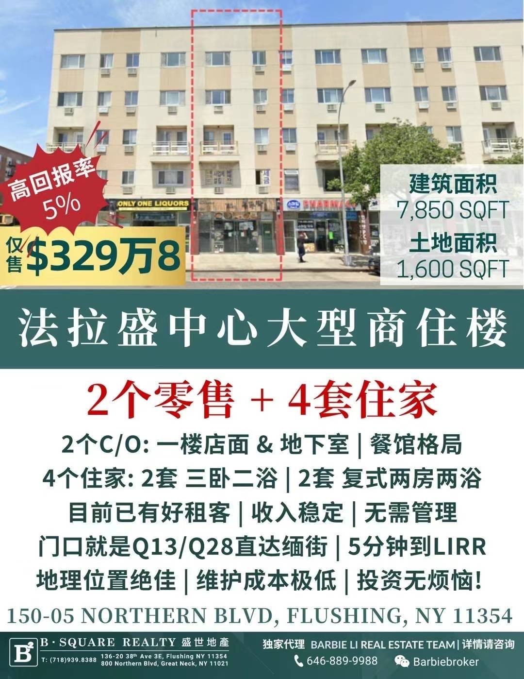 🚨回报率5%!!!🚨 法拉盛中心大型商住楼🏢