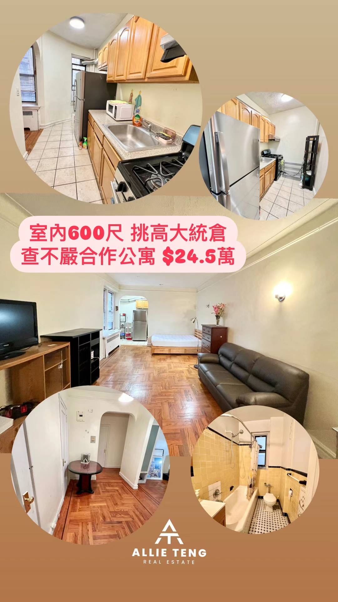 纽约法拉盛新大筒仓出售Flushing Studio For Sale新上市法拉盛大统仓出售法拉盛中心❗️查不嚴/易通過合作公寓600尺統倉🟥獨家代理將上市/搶先看❗️可買給爸媽住/買了可馬上出租廚房、浴室開窗無flip tax,現金買家一個月內可以過戶Asking $245K詳情🔎#AllieTeng鄧小姐929-204-6681