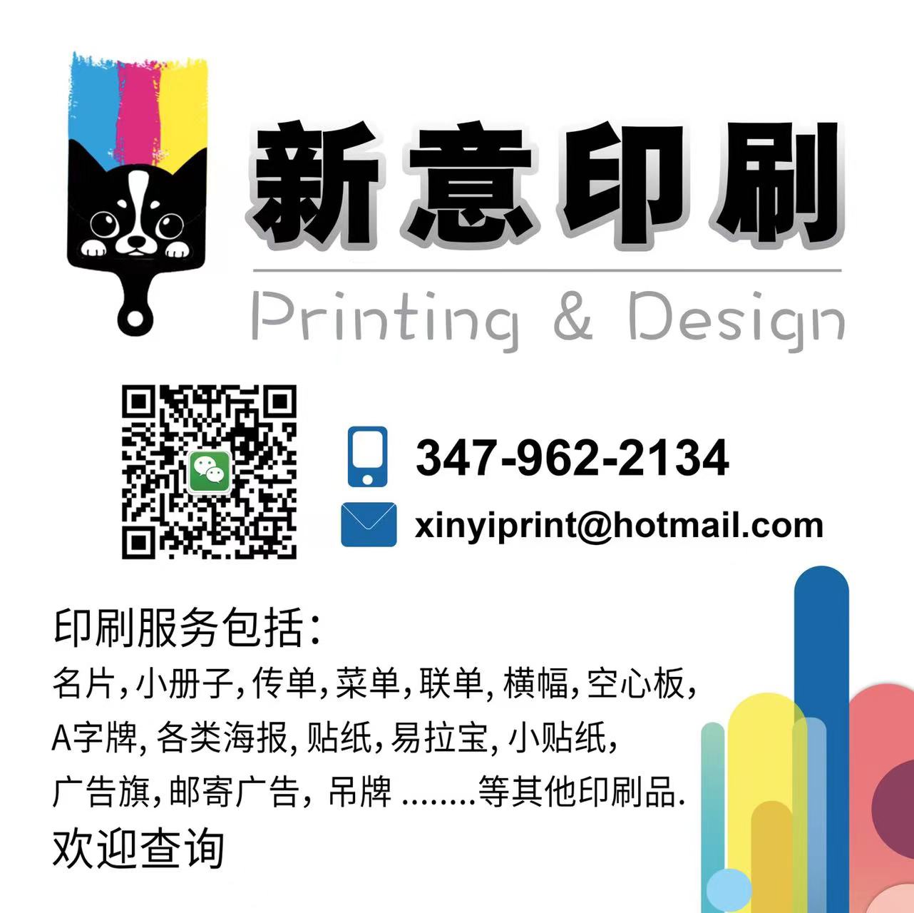 新意印刷/设计。 专业设计和印刷,全美邮寄免费,新客户九折优惠,欢迎查询 🎉 电话:347-962-2134, 微信号:xinyiprint23