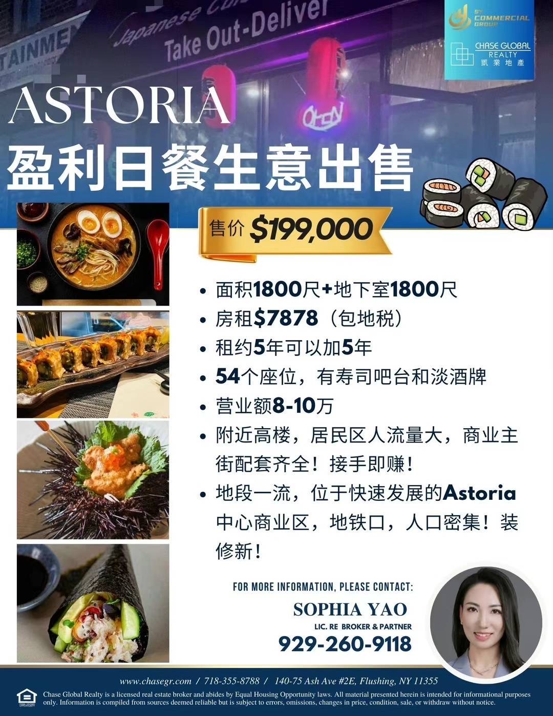 🔸地段一流,位于快速发展的Astoria中心商业区,地铁口,人口密集!装修新!