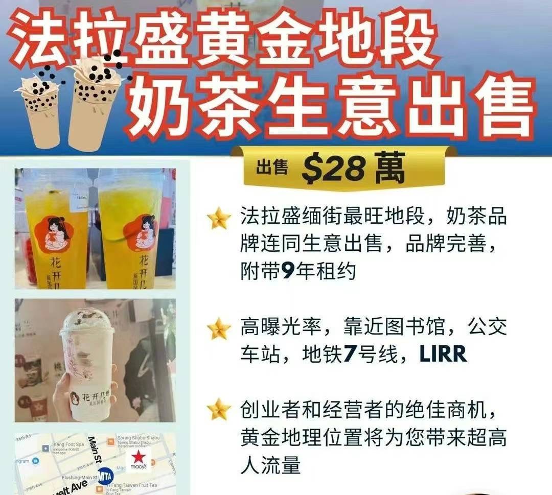 **👏👏法拉盛缅街最旺地段——奶茶品牌连同生意出售**
