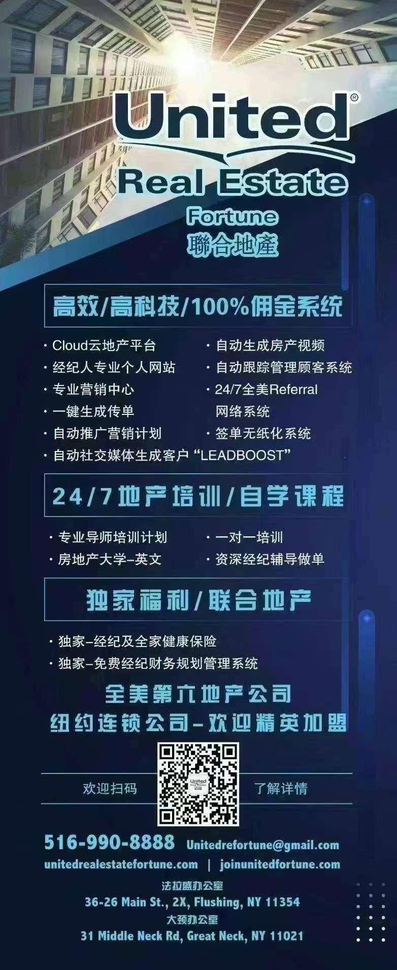 纽约华人168大房地产公司360 纽约高端经验房地产经纪 The Best Real Estate Agent in New York 纽约地产经纪最佳地产经纪人United RE Fortune 联合地产恭喜经纪顺利过户!在最短时间卖出最高价是我门的目标,欢迎各位客户来委托!!再次庆贺母总公司United Real Estate荣获今年美国地产公司中成长最快,TOP信誉的地产公司👍🥇🏆🥳🎯🌈💪🎈Home office: United Real Estate-No.1 Fastest Growing Residential Brokerage- National ranking compared five-year percentage growth in transactions of the nation’s fastest-growing independent and franchised brokerages!🥳🎉🎉🎉🎊🎊🎊🎈🎈🎈👏👏👏欢迎加入,一起创造美好成功的未来🤝❤️🌈🎯⛽️💪🤗🥇🏆☎️516-990-8888