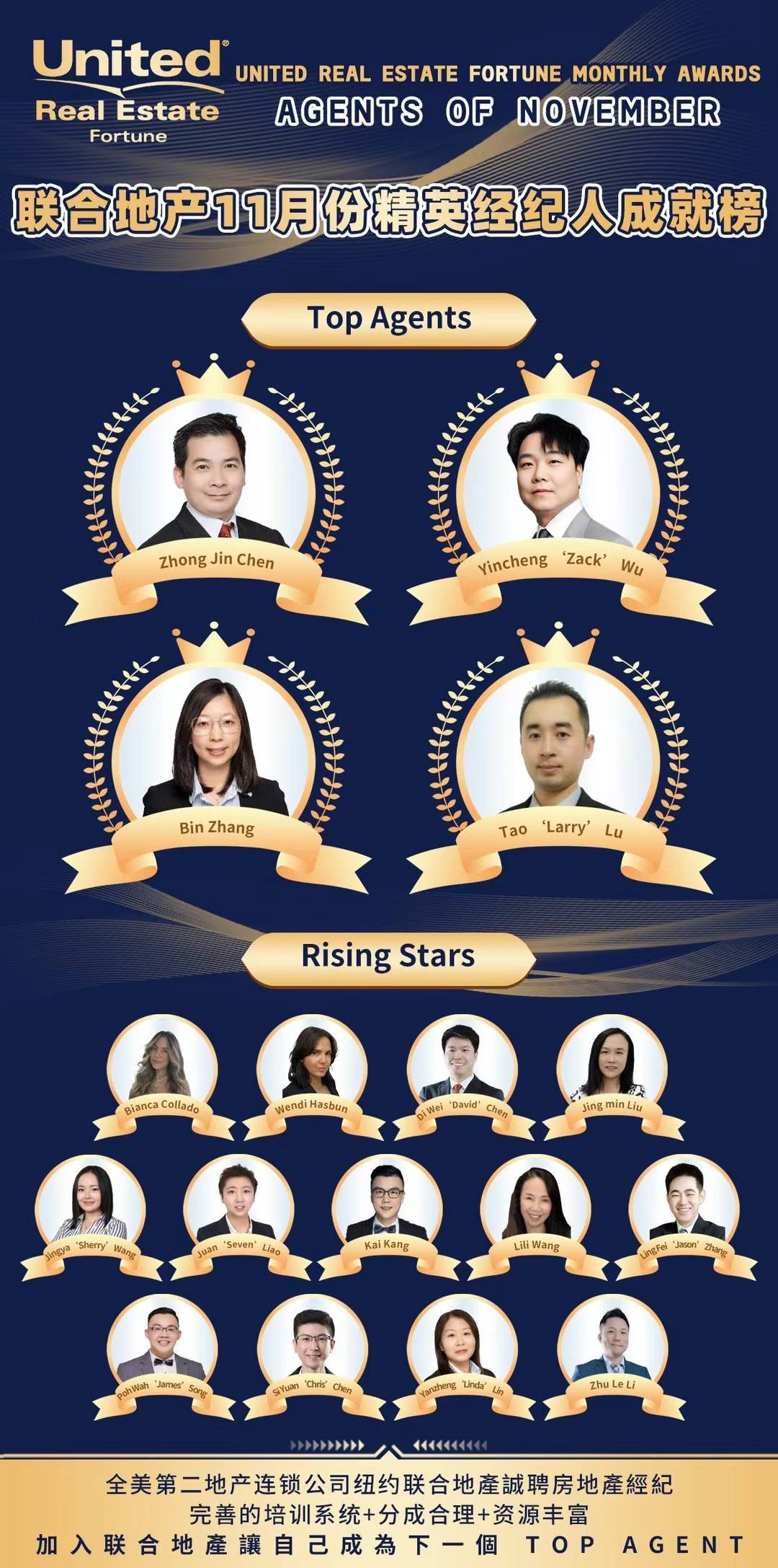 New York Top Real Estate Agent纽约著名地产经纪 纽约华人168大房地产公司360纽约资深千万房地产经纪 恭喜🎉🥳 Top Agent of November and Agents of the month November🎯👍🥳🌈🎉🎈