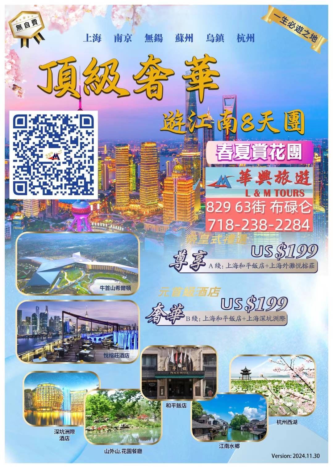 世界旅游上海旅游 南京旅游 無鍚旅游蘇州旅游 烏鎮旅游杭州旅游頂級奢華旅游 遊江南8天團旅游春夏賞花團 US$199华兴旅遊 718-238-2384
