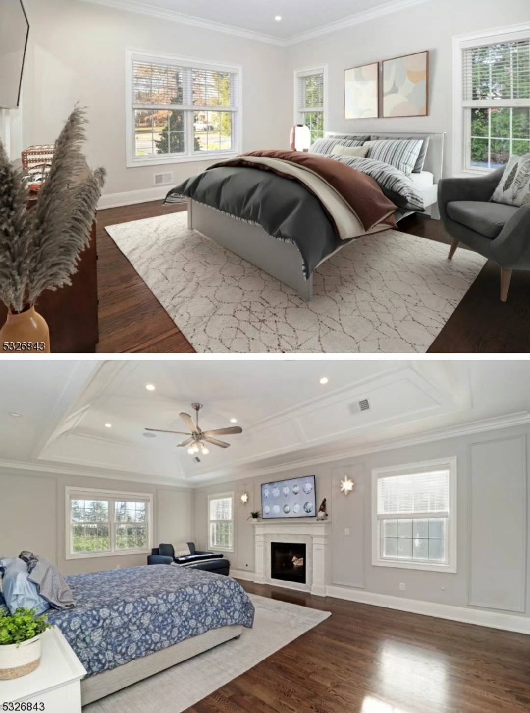✅主卧套房奢华舒适,配托盘天花板、壁炉和休息区,外加3个衣柜和一个极尽精美的浴室,设有超大淋浴和浸浴盆