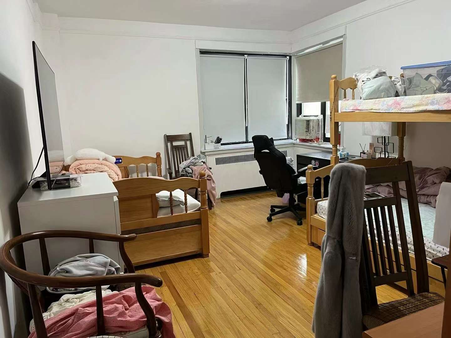 法拉盛 近缅街 学府楼上,大1房3厅 电梯公寓Coop ,查不严,好通过,厨房厕所都有窗,近900尺,管理费$973,近华人超市,方便一切 少有的大面积1房1厅,