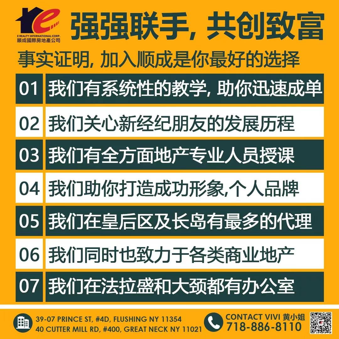 5️⃣公司有专业人员能够及时回复6⃣免费制作房源flyer7️⃣教你如何制作文宣, 短视频进行推广8️⃣教你打造成功形象, 个人品牌开启你的地产生涯 加入顺成, 共创辉煌