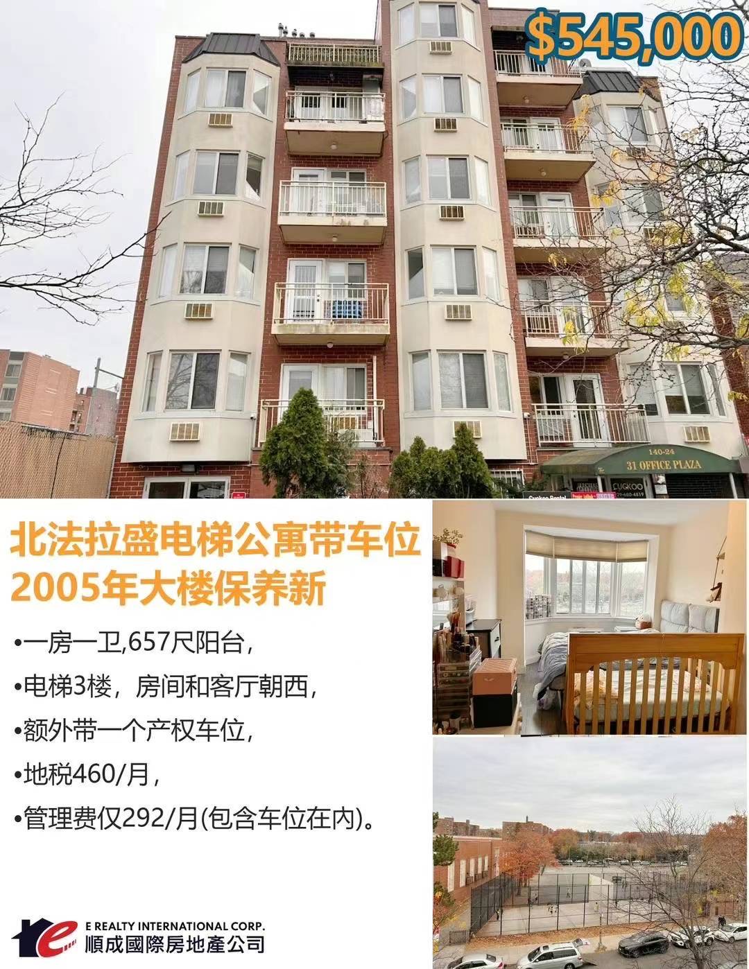 纽约法拉盛豪华康斗出售Flushing Luxury Condo NY 新上市法拉盛高档康斗出售法拉盛豪华康斗独家预售买卖 🎈出售🎈北法拉盛电梯公寓带车位2005年大楼保养新一房一卫,657尺阳台,电梯3楼,房间和客厅朝西,额外带一个产权车位,地税460/月,管理费仅292/月(包含车位在內)。楼下公交车站,周边图书馆超市应有尽有,大楼对面小学Ps214.