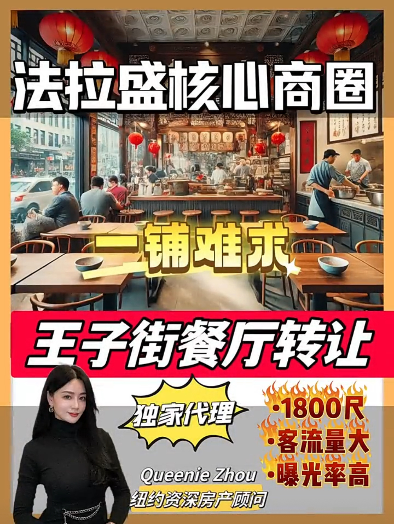独家新上市!已有出价!速度⚡️法拉盛黄金地段 | 王子街1800尺餐厅转让✨ 核心亮点: