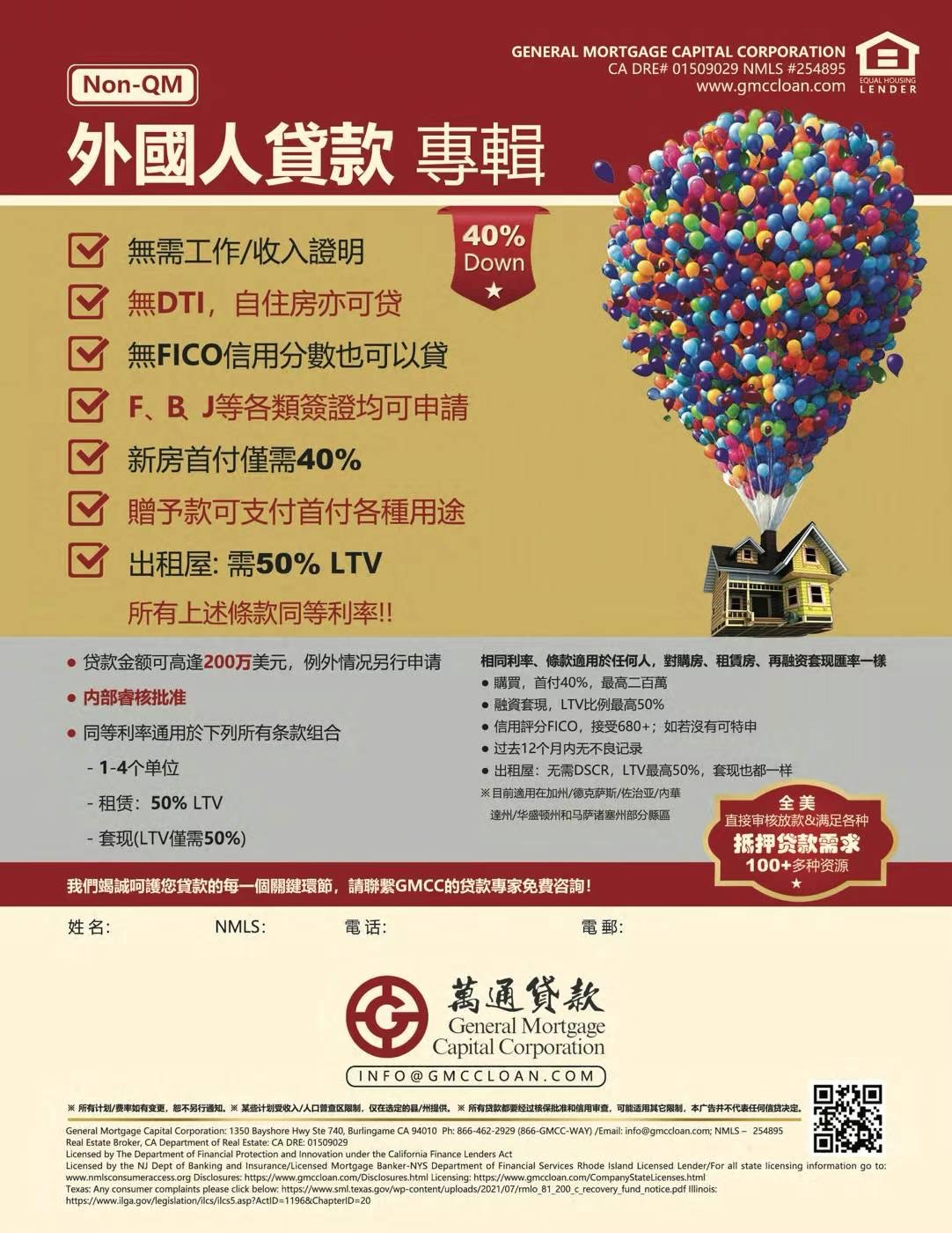 详情请联系GMCC万通贷款在全美49州的六百多位贷款顾问(GMCCLOAN.COM,SPECIAL.GMCCLOAN.COM)