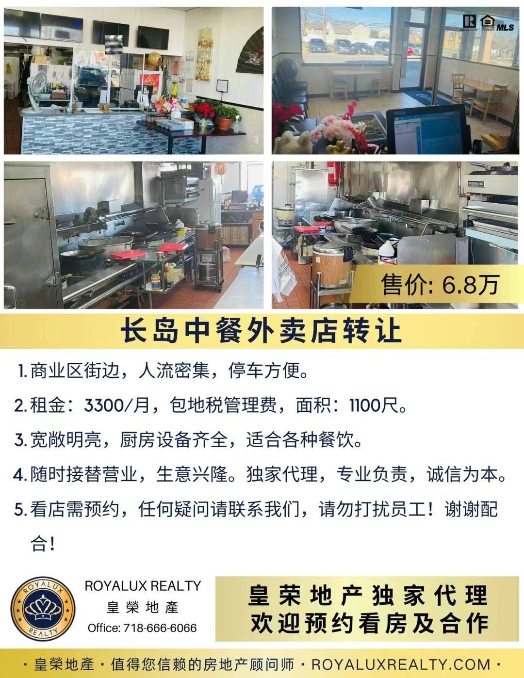 👑皇荣地产独家代理生意买卖👑长岛中餐外卖店转让!售价6.8万