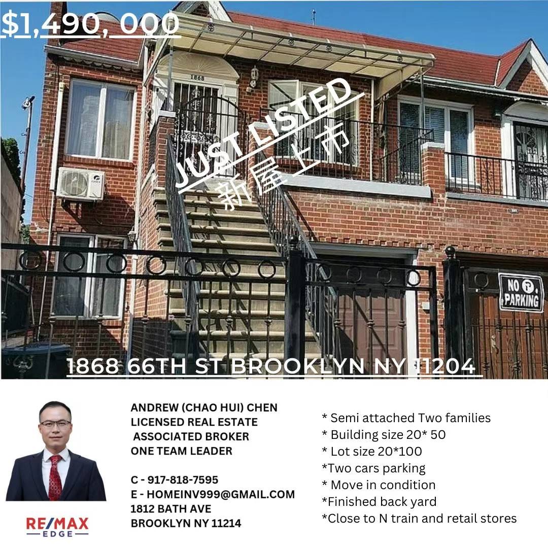 Open House NY周末纽约房地产公展Top New York Agent纽约资深千万经纪独家代理好房源明天2PM看房/需要预约1868 66 ST Brooklyn NY 11204两家庭/有车位