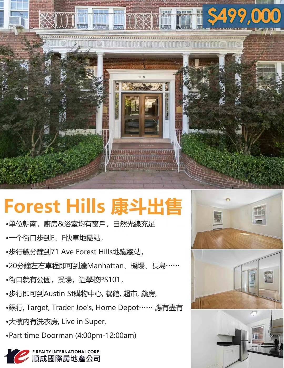 纽约森林小丘房子出售Forest Hills NY 新上市森林小丘房屋住宅出售森林小丘豪宅独家出售买卖🏠Forest Hills森林小丘 一房兩廳Condo出售💰僅售$49.9萬