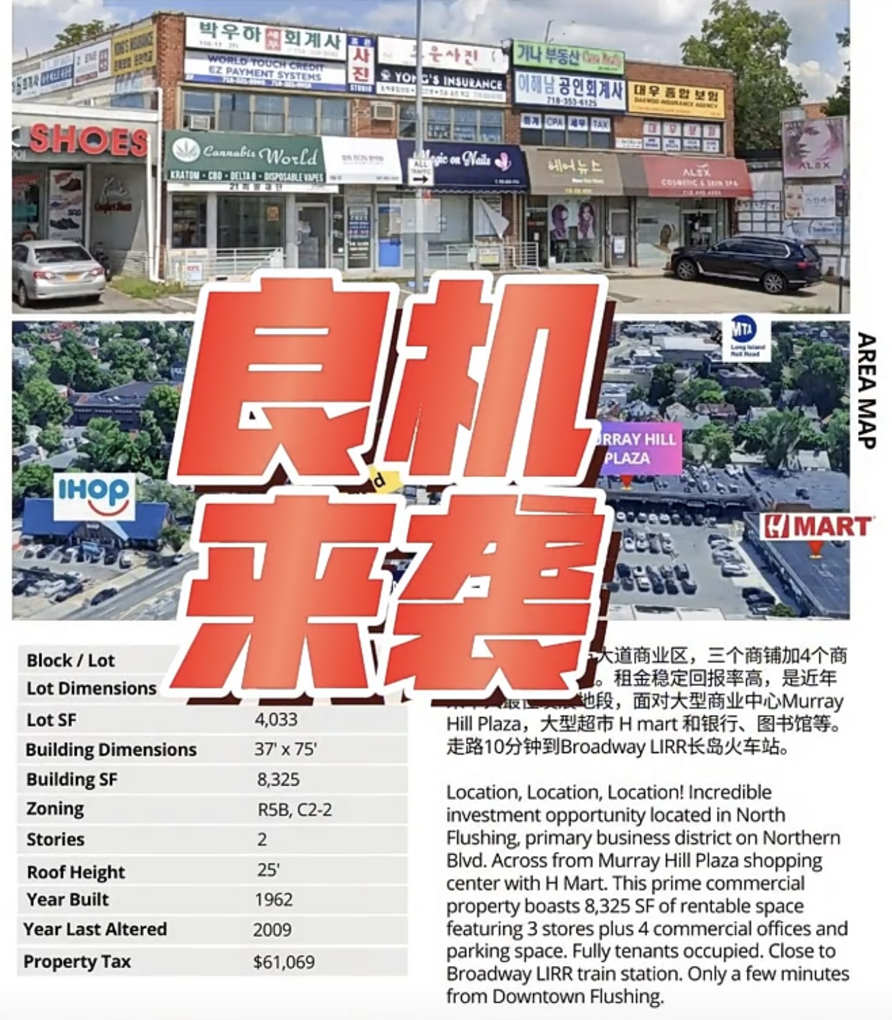 今天分享我们独家代理 纽约华人聚集地法拉盛,宝藏商业楼。