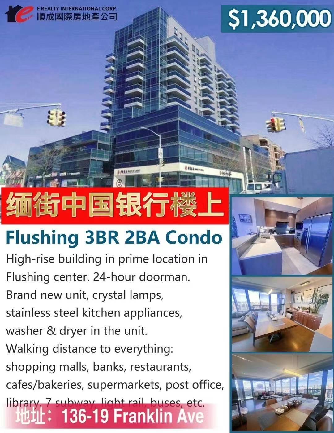 纽约法拉盛豪华康斗出售Flushing Luxury Condo NY 新上市法拉盛高档康斗出售法拉盛豪华康斗独家预售买卖 出售 法拉盛中心缅街位置法拉盛心脏!缅街康斗三房一厅,两个卫生间,带双阳台,屋主自己买过来重金打造 !更新两个睡房打通一个大套房,所有的电器水晶灯都是高级配套!目前当两房二卫一厅使用,空间大面积是1200尺,楼下就是中国银行,24小时门卫、步行地铁超市,图书馆,餐馆,值得必看!管理费900 ,厨电全包 !地税一年3100