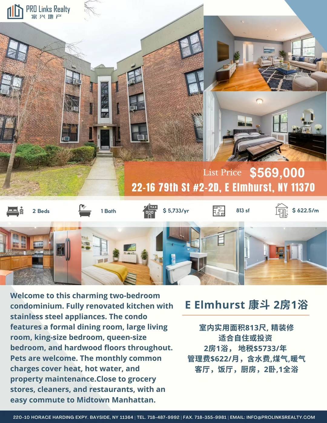 纽约艾姆赫斯特房子出售Elmhurst NY 新上市艾姆赫斯特房屋住宅出售艾姆赫斯特豪宅独家出售买卖🎉新上市E Elmhurst 康斗,2房1浴🧧售$56万9室内实用面积813尺, 精装修, 可养宠物适合自住或投资 2房1浴, 地税$5733/年 管理费$622/月,含水费,煤气,暖气 🏠 客厅,饭厅,厨房,2卧,1全浴🏠22-16 79 Street #2D E Elmhurst NY 11370👏欢迎合作转发☎️ Lillian 劉 917-418-8233☎️Ching 杨917-929-1456