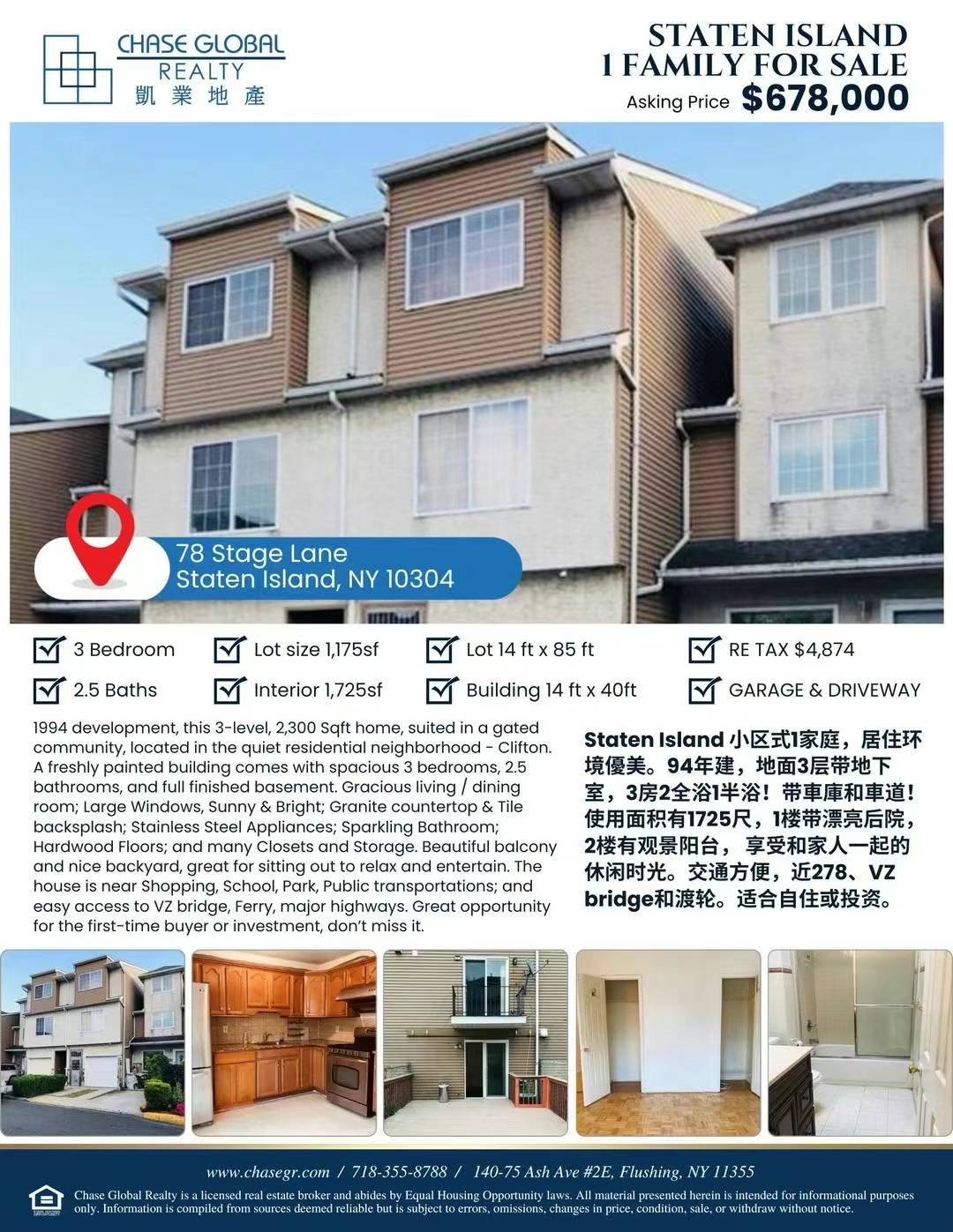 纽约史丹顿岛房子出售 华人区Staten Island NY 新上市史丹顿岛房屋住宅出售史丹顿岛豪宅独家出售买卖Staten Island 小区式1家庭出售!售价:$678,000Staten Island 小区式1家庭,居住环境優美。94年建,地面3层带地下室,3房2全浴1半浴!带車庫和車道! 使用面积有1725尺,1楼带漂亮后院,2楼有观景阳台, 享受和家人一起的休闲时光。交通方便,近278、VZ bridge和渡轮。适合自住或投资。看房联系Cynthia☎️646-267-0163#房屋买卖
