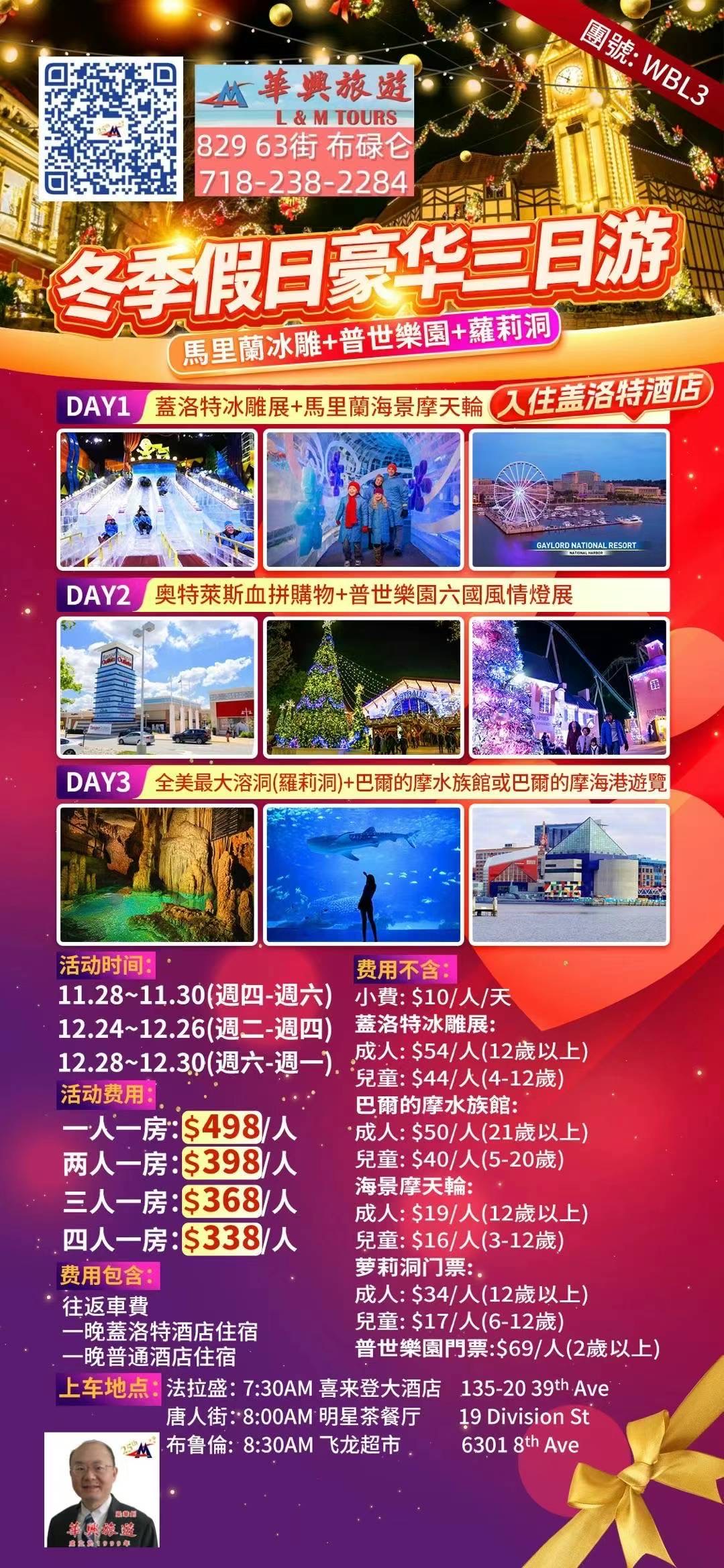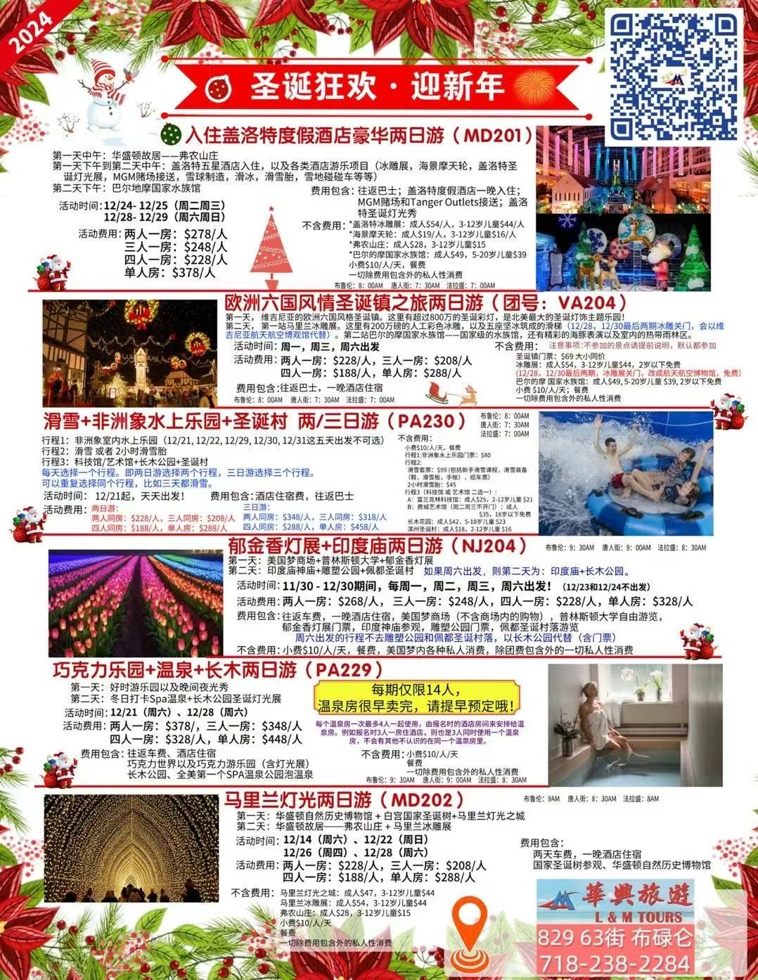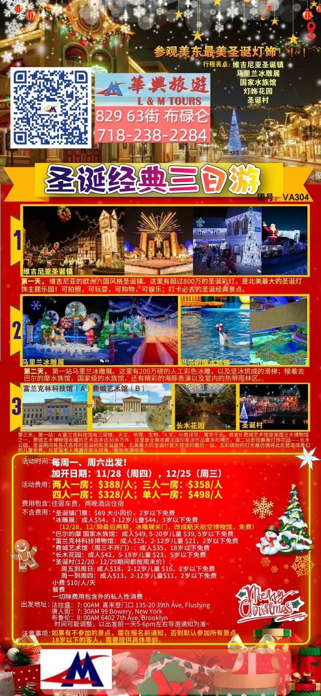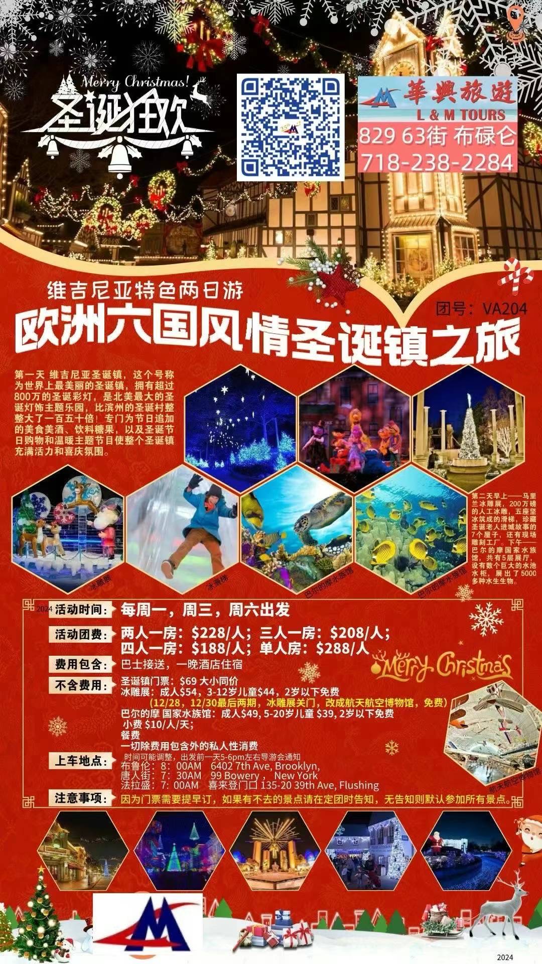 L& MTOURS 圣诞村 829 63街 布碌仑718-238-2284圣诞经典三日游号:VA304