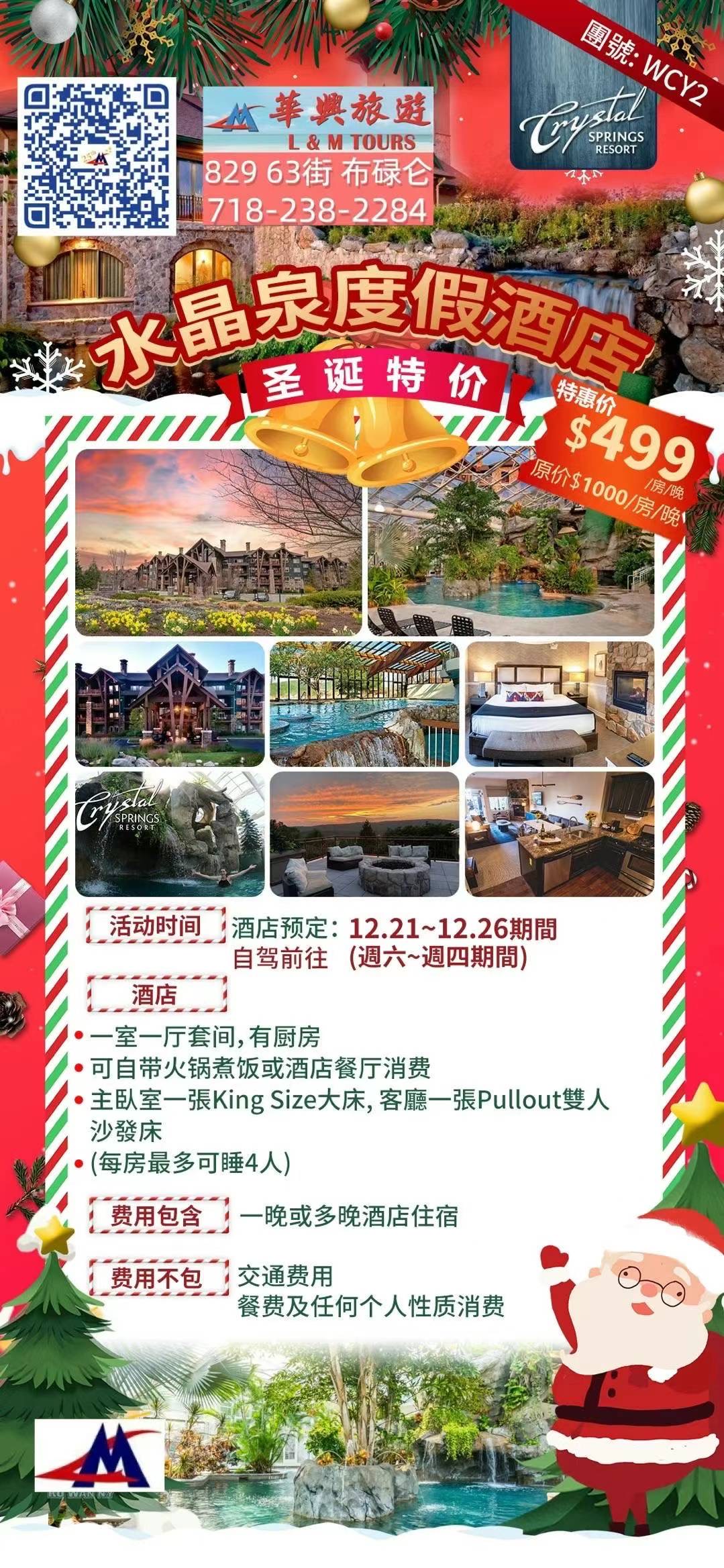 水晶泉度假酒店圣诞特价特惠价$499原价$1000/房/晚 /房/晚
