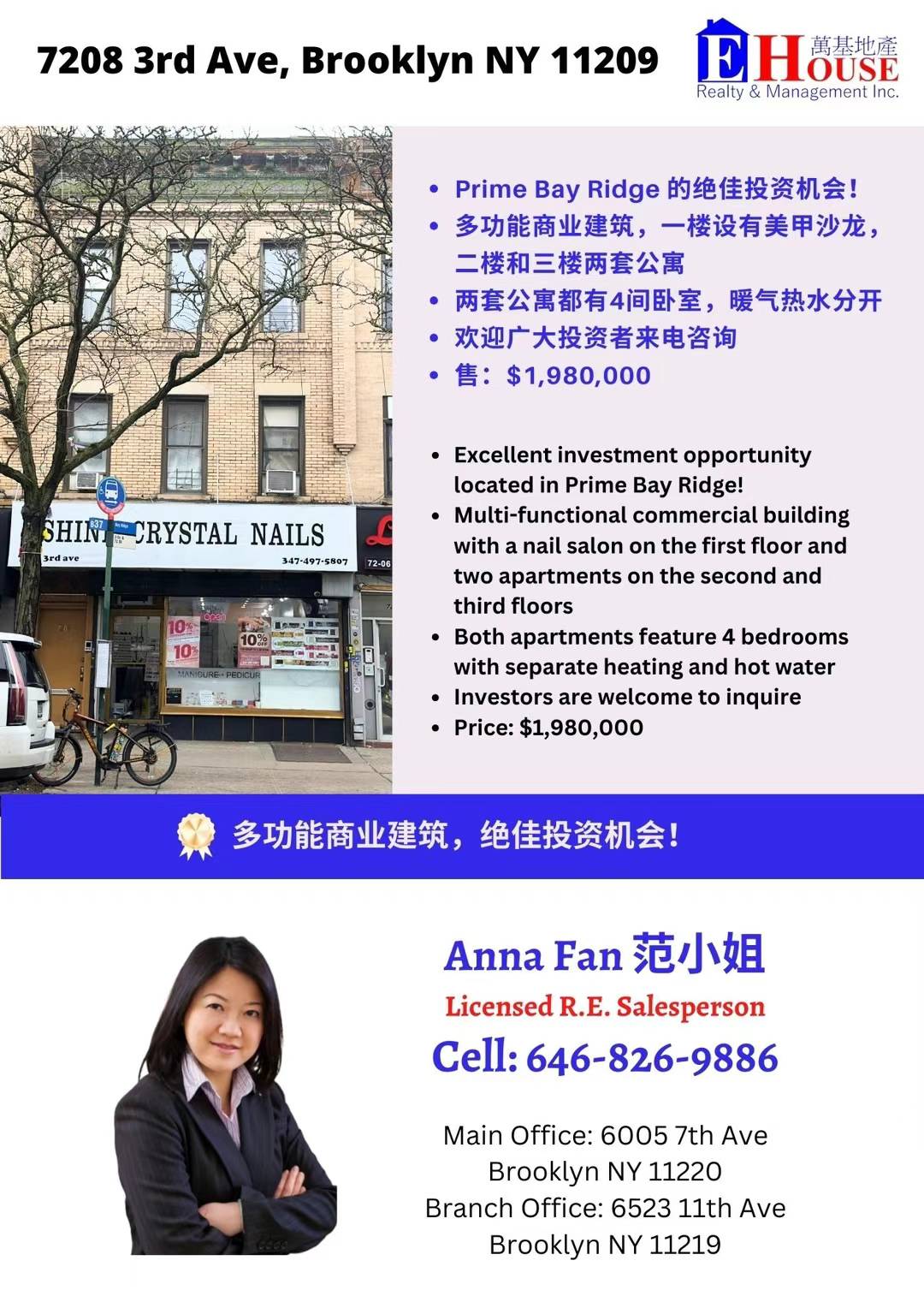 最新独家代理:繁忙地段布鲁克林商业楼出售