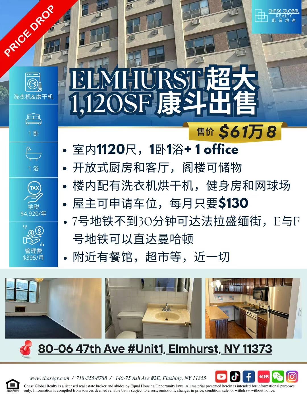🎈纽约艾姆赫斯特房子出售Elmhurst NY 新上市艾姆赫斯特房屋住宅出售艾姆赫斯特豪宅独家出售买卖🎈最新上市,屋主急售,又直降⬇️8.1万,每平方呎只卖$552!全城最低价!欢迎同行合作转发:[礼物][礼物]🎁🎁,给家人最好的礼物,就是买一个交通便利、生活购物都方便的房子,凯业地产独家代理,最新上市抢手好房源!Elmhurst 1120尺康斗仅售61.8万!