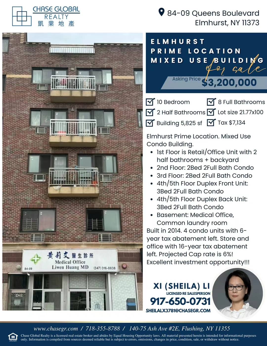 Elmhurst中心 商住大楼出售整栋$320万,也可分开出售