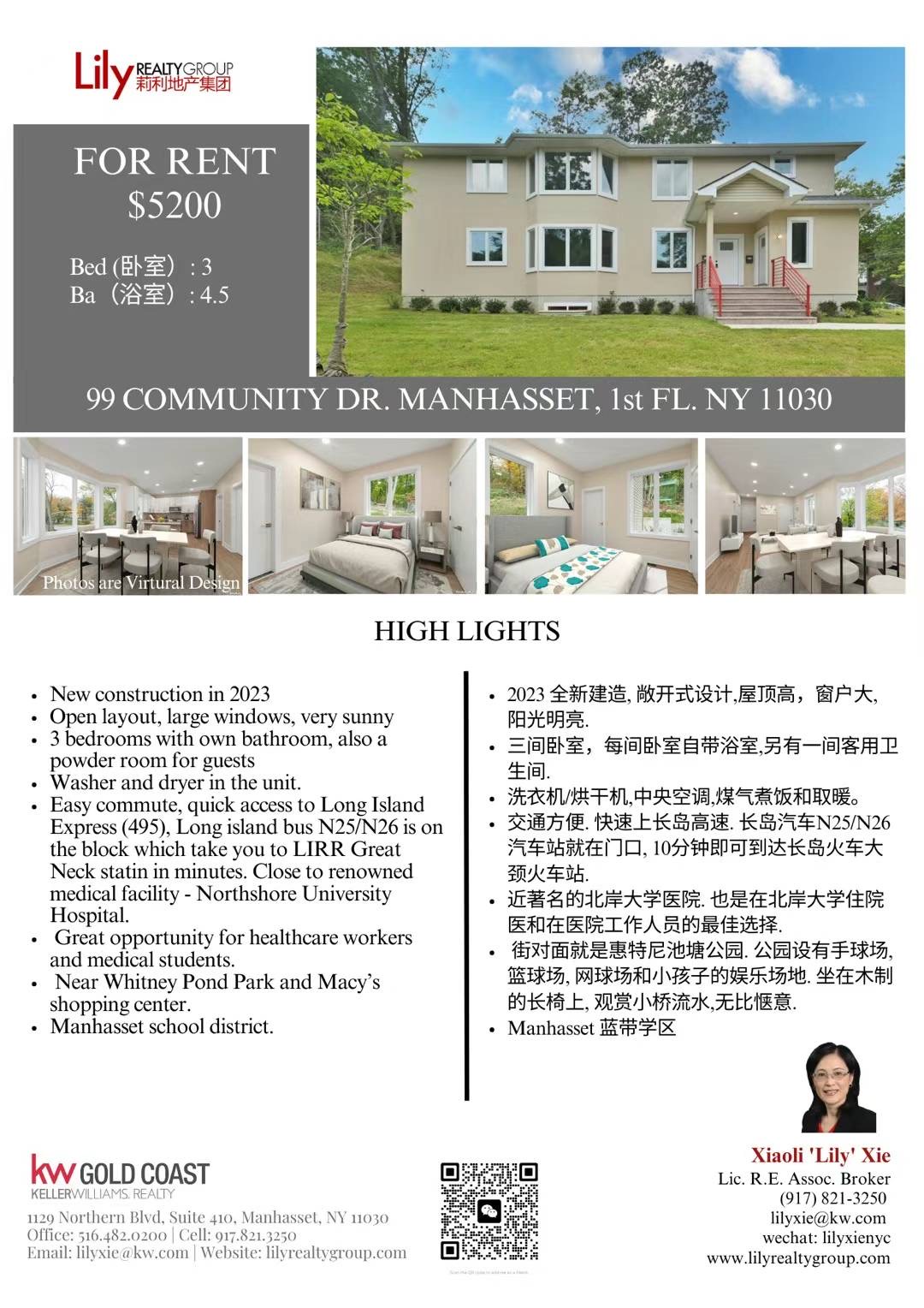 Manhasset 蓝带学区短信9178213250 约看房。欢迎同行合作。