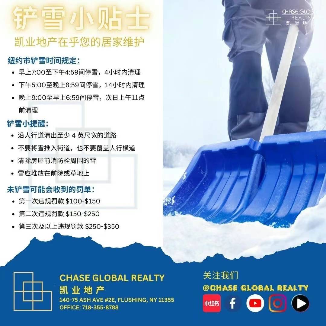 ⏰晚上9:00至早上6:59间停雪,次日上午11点前清理