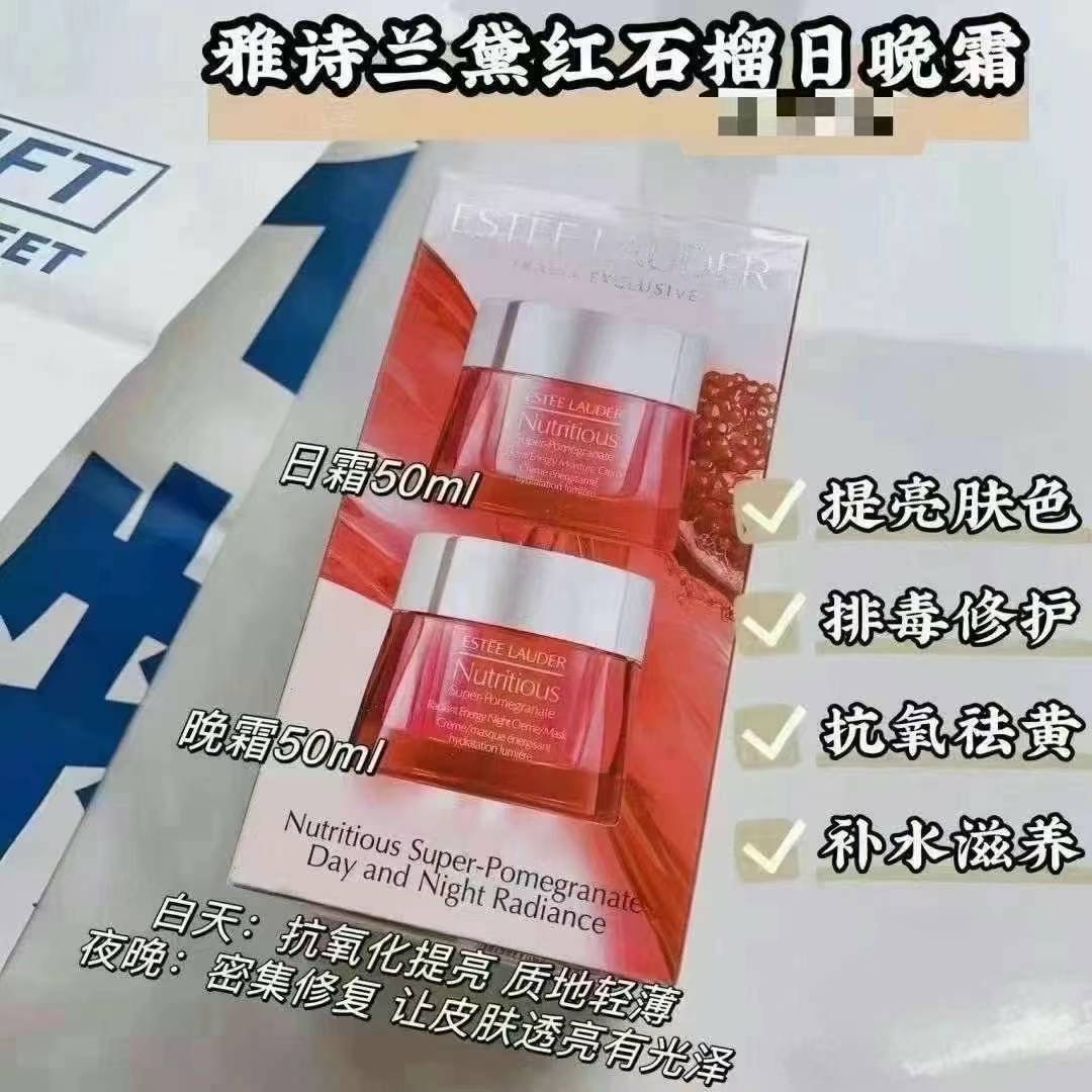 ❤️超低价¥699直邮包税!新鲜日期到2026年❤️雅诗兰黛红石榴日晚霜套装 日霜50ml+晚霜50ml,送妈妈超合适啊早晚各用一瓶,击退黯哑、疲惫肤色,注入鲜活能量,绽放红润好气色。排浊养颜,提亮肤色,改善肌肤暗黄无光泽!送礼佳品💰650元超值套装,全部正装,雅诗兰黛esteelauder红石榴三件套,洁面125ml,滋润爽肤水200ml,晚霜50ml 现货40套 里面精华是独立包装哦 直接清仓特价❤️超低价¥799直邮包税!🥰🥰娇韵诗双萃精华面霜套装!熟龄肌仙女选它❤️套装包括:双萃精华50ml➕抗皱日霜15ml➕抗皱晚霜 15ml➕,还有一个化妆包,价钱¥2000➕现货25个 超低价¥950/组直邮包税❤️雅诗兰黛多效智妍系列😍搭配使用绝绝子啊‼️多效智妍面霜与智妍晚霜50ML可选 [庆祝][庆祝]补货40瓶75ML 太难抢啦😍😍超低价¥699/75ML直邮包税‼️新款智妍面霜75ml 添加芙蓉花成分🌸帮助皮肤更快紧致抗衰老 而且额外添加了提拉的效果 😍淡化脖子的纹路 🌝高达72小时补水 💦减小脸部毛细孔 🧖🏻♀️并且是玻璃瓶装的哦 💃用完后不要把瓶子扔掉可以来柜台买一个替换装💁🏻♀️💁🏻♀️💁🏻♀️赶紧来尝鲜吧[爱心][爱心][爱心]