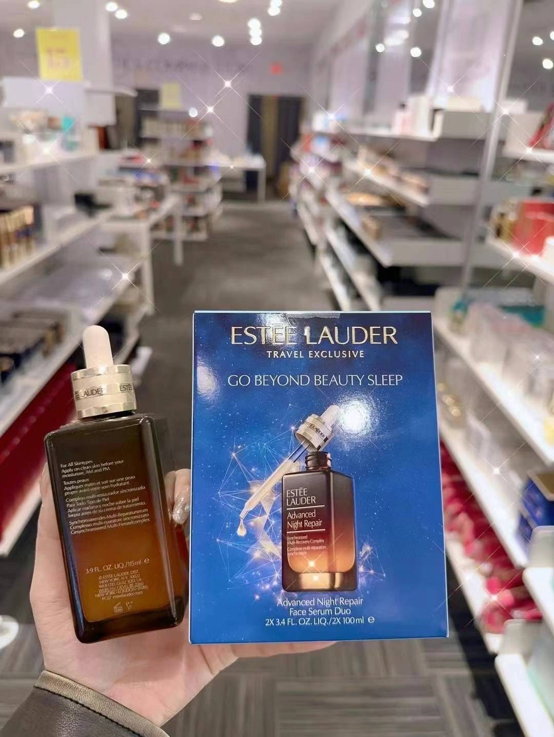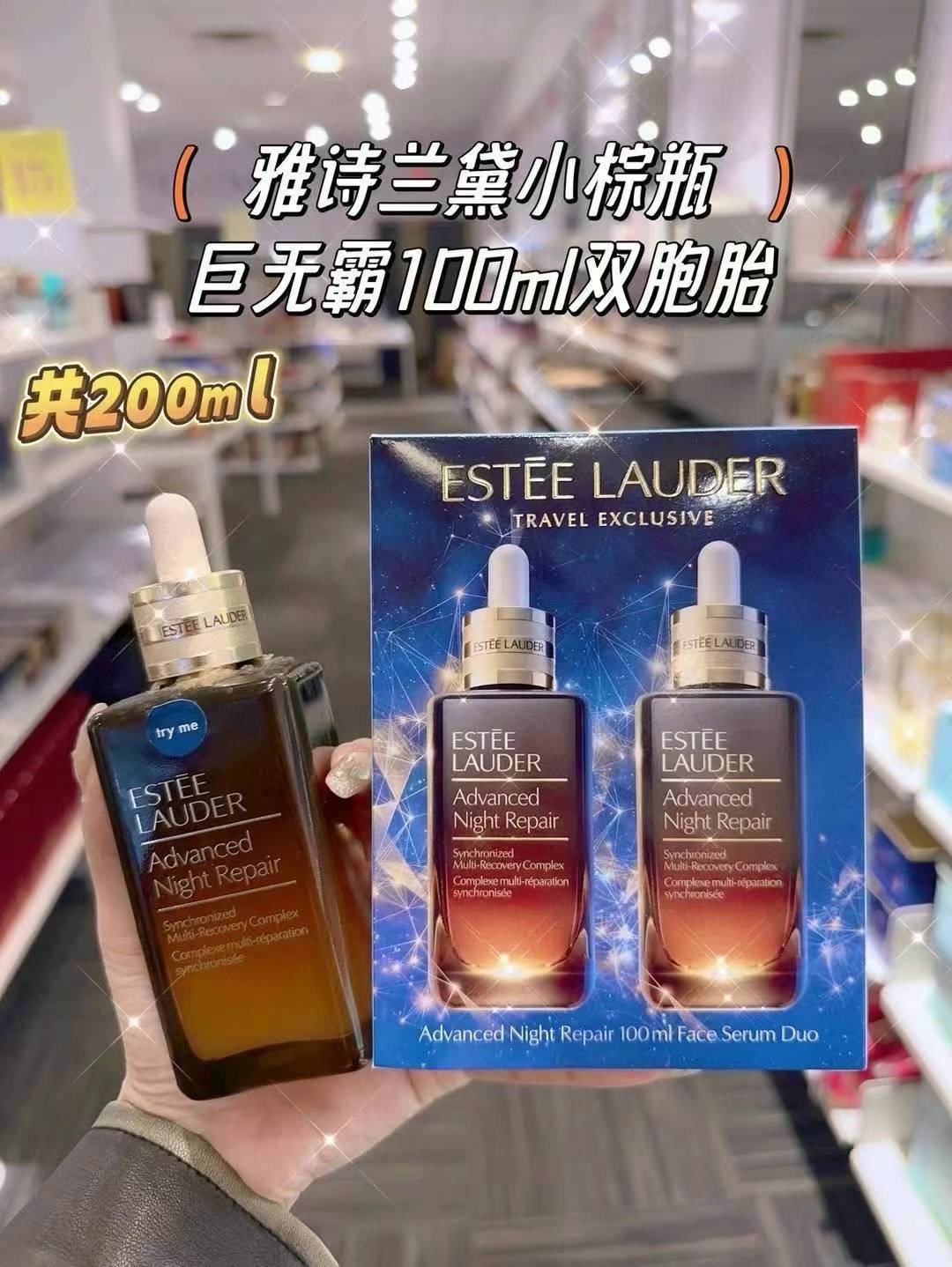 国内专柜单50ml 卖850 每天滚动播放 这款太火爆啦‼️补货50套 新鲜日期23年产 现在太难买了❤️啊啊清仓好折扣💢雅诗兰黛巨无霸🔥🐮超低价⚠️¥1399/2瓶直邮‼️‼️🥳包括100ml*2瓶,一共200毫升巨无霸双胞胎💥第七代新款😱,里面是两个独立包装,国内50ml一瓶900啦,咱们今天相当于半价哦⚠️100ml巨无霸成分添加了线雕精华的提拉紧致效果,也就是一瓶新版小棕瓶帮你搞定修复,提拉紧致,抗皱功效~