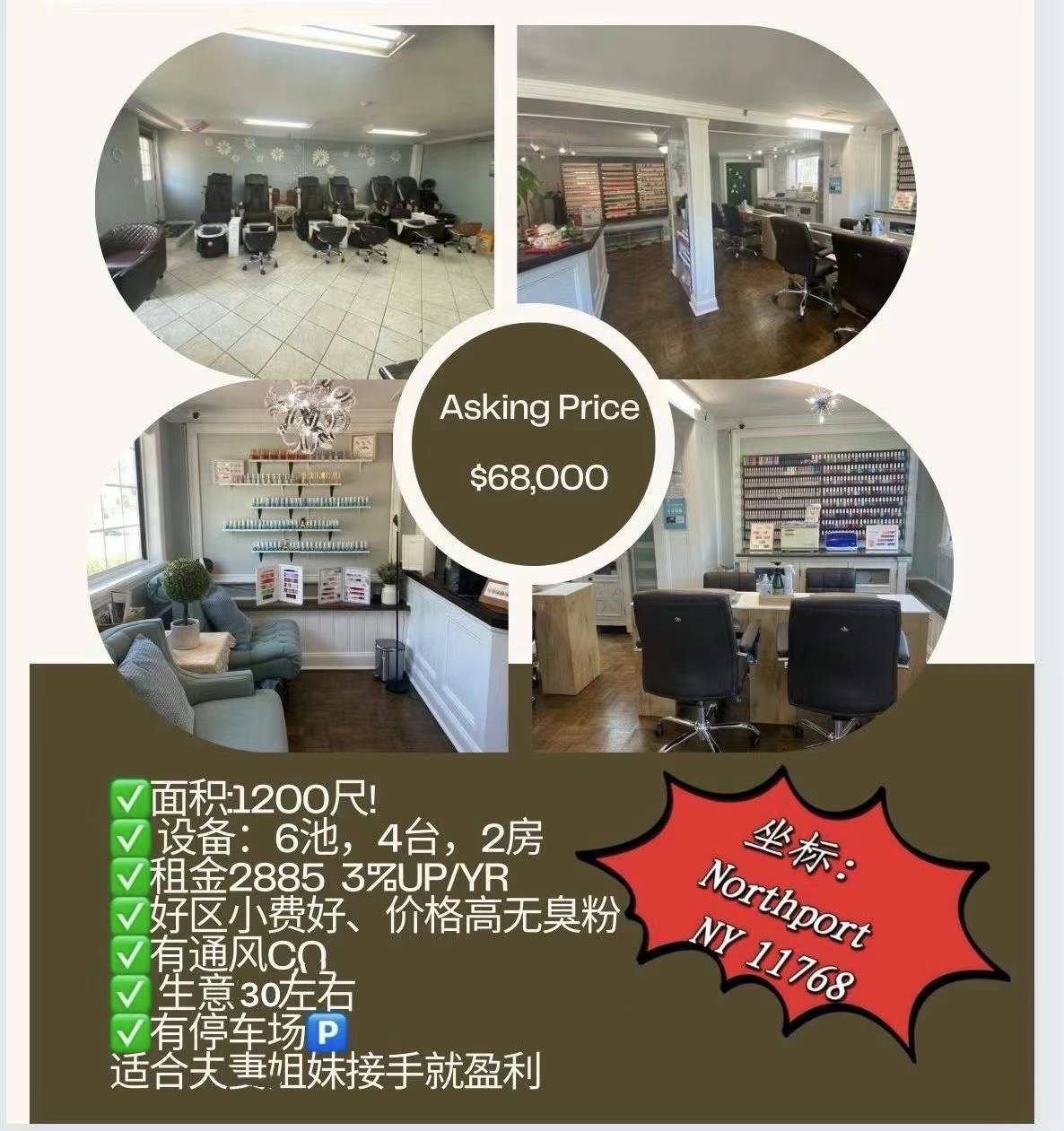 ✅ 6个脚池,4个手台和1个拔毛房、一个睫毛房、一个厨房放洗衣&烘干机