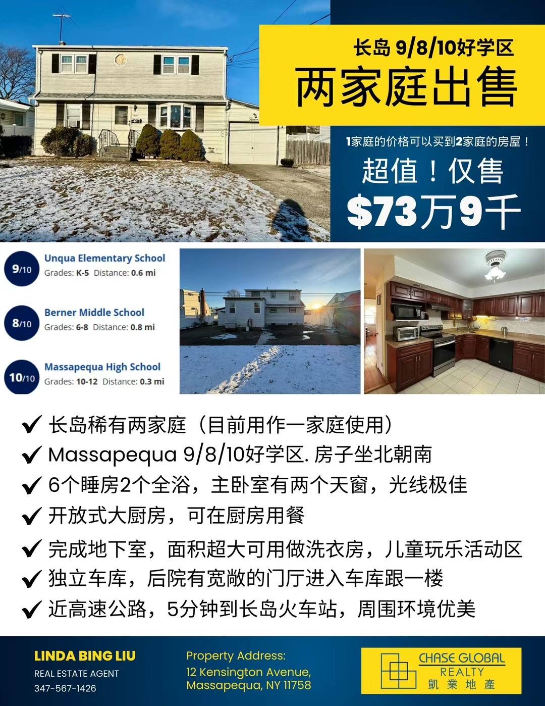 长岛房子出售网Long Island NY新上市长岛房屋住宅出售长岛豪宅独家代理买卖[Rich]长岛 9/8/10好学区两家庭出售![Rich]🎈 本周六日12:00-2:00pm公展🎈