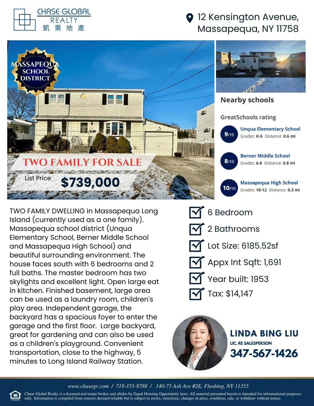 📍 12 Kensington Avenue, Massapequa, NY 11758售价:$73万9