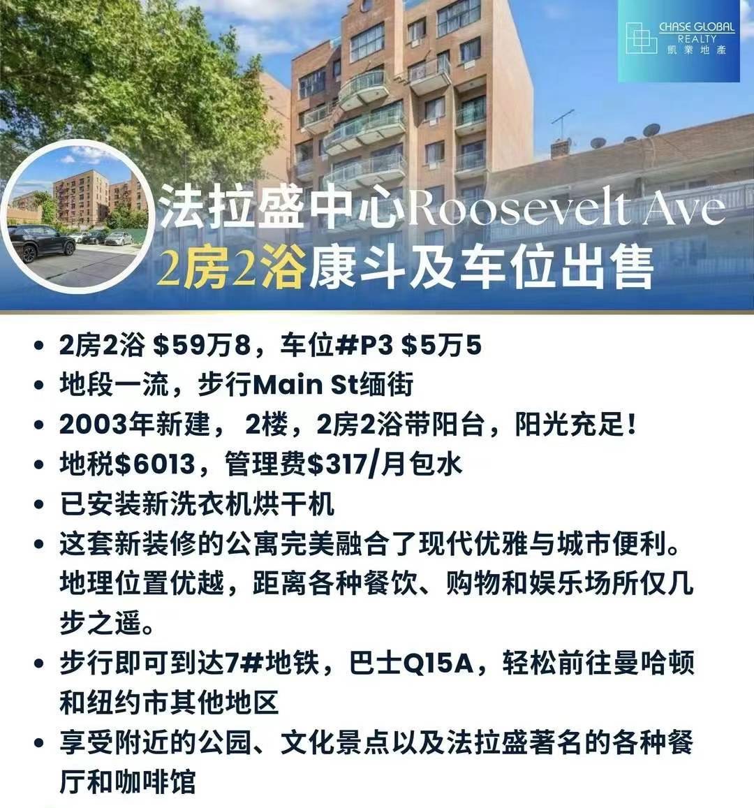 纽约法拉盛豪华康斗出售Flushing Luxury Condo NY 新上市法拉盛高档康斗出售法拉盛豪华康斗独家预售买卖 [發]法拉盛中心Roosevelt Ave2房2浴康斗及车位出售