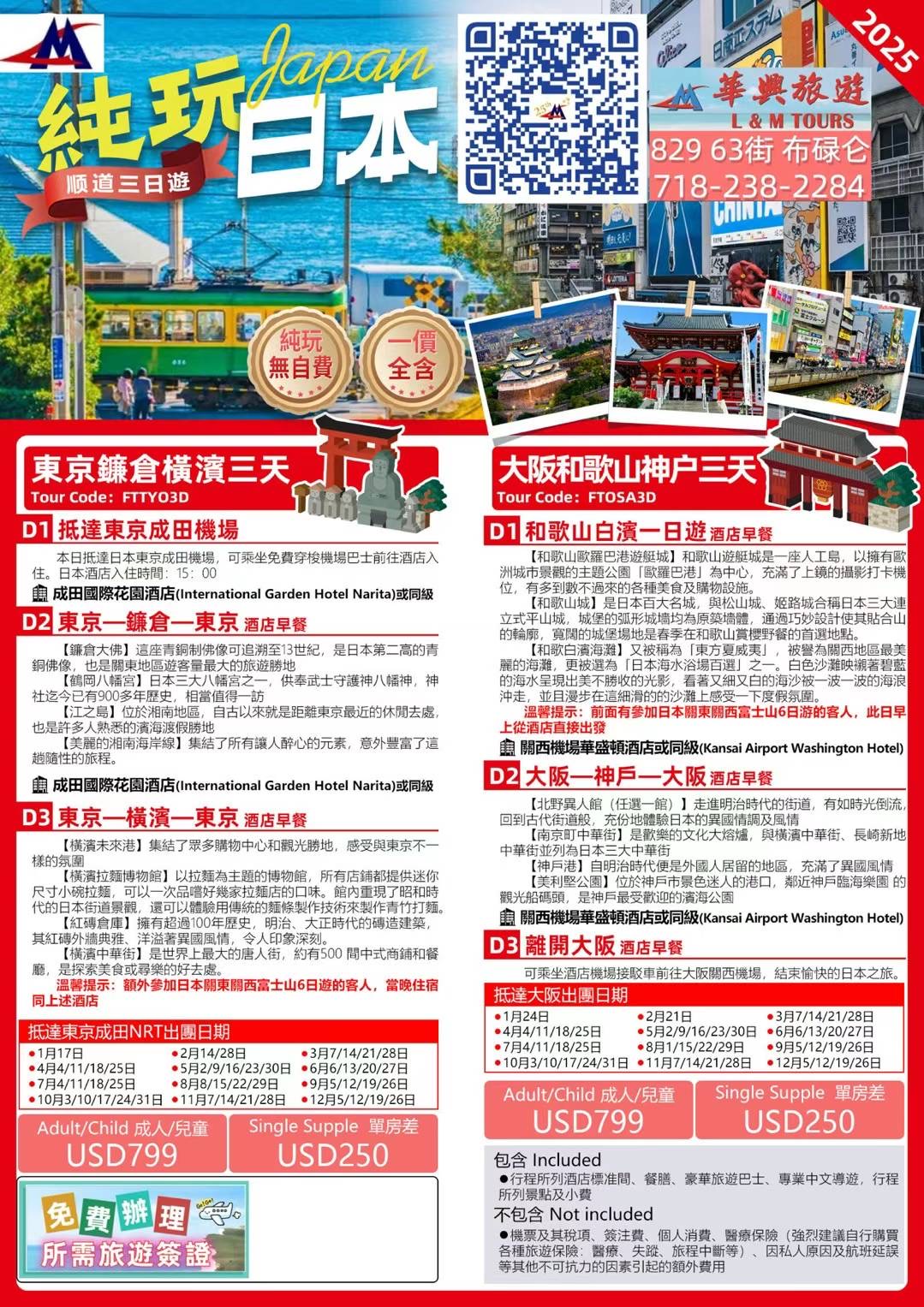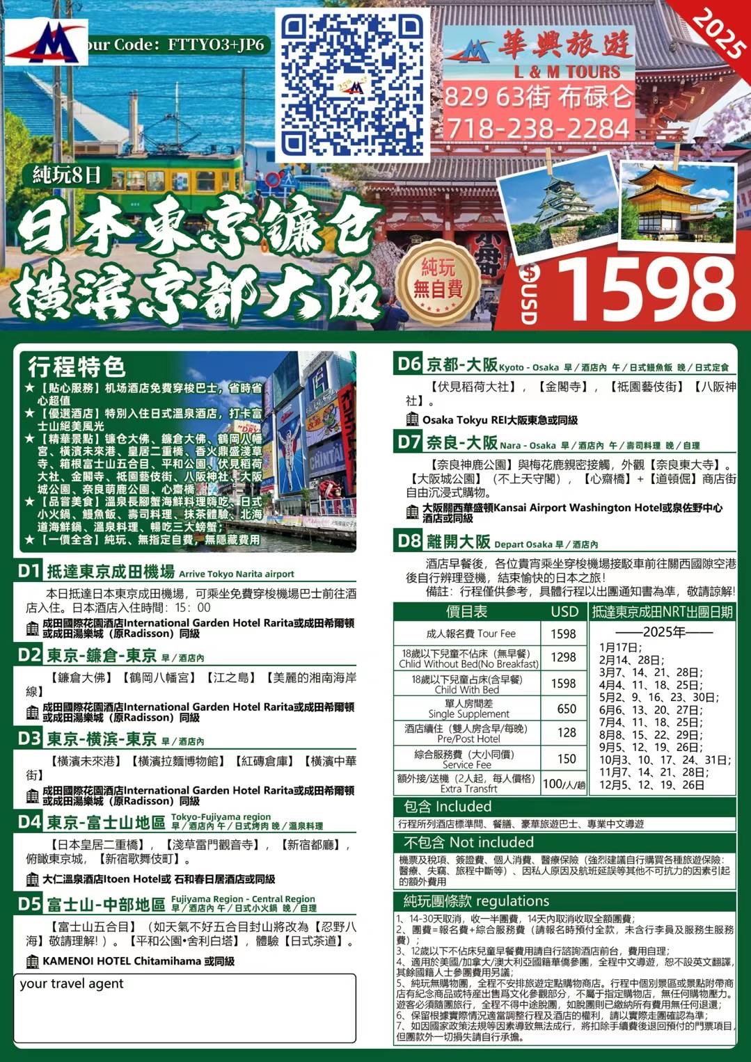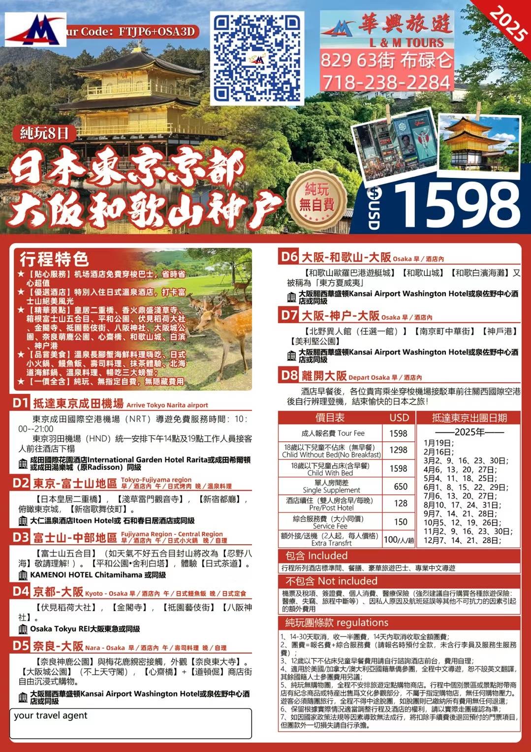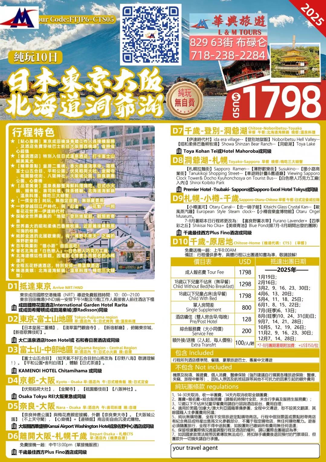 日本旅游⓵日本北海道札幌洞爷湖温泉纯玩𝟝天 ⓶日本东京大阪北海道纯玩𝟙𝟘天 ⓷日本关东关西东京富士山大阪纯玩𝟞天 ⓸日本东京鎌仓横滨京都大阪纯玩𝟠天 ⓹日本东京京都大阪和歌山神户纯玩𝟠天 ⓺日本东京鎌仓横滨纯玩𝟛天 ⓻日本大阪和歌山神户纯玩𝟛天2025玩转日本系列