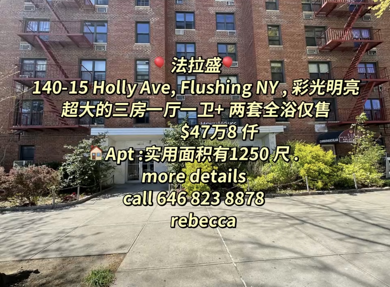 纽约法拉盛豪华公寓出售 Flushing Luxury Coop NY新上市法拉盛高级合作公寓大楼出售法拉盛高大上公寓独家出售买卖 🎈法拉盛🎈欢迎转发可议价刚上市 的三房两全浴的co op 在140-15 Holly Ave, Flushing NY , 彩光明亮超大的三房一厅一卫+ 两套全浴仅售$47万8 仟🏠Apt :实用面积有1250 尺 . 无须装修只须拎包入住既可🏠Co- OP 近多路巴士 /也可步行到缅街/半分钟步行到金城发超市,及多种不同风味的中式餐厅 Buyer agent 2% More info万荣地产公司☎️646 823 8878