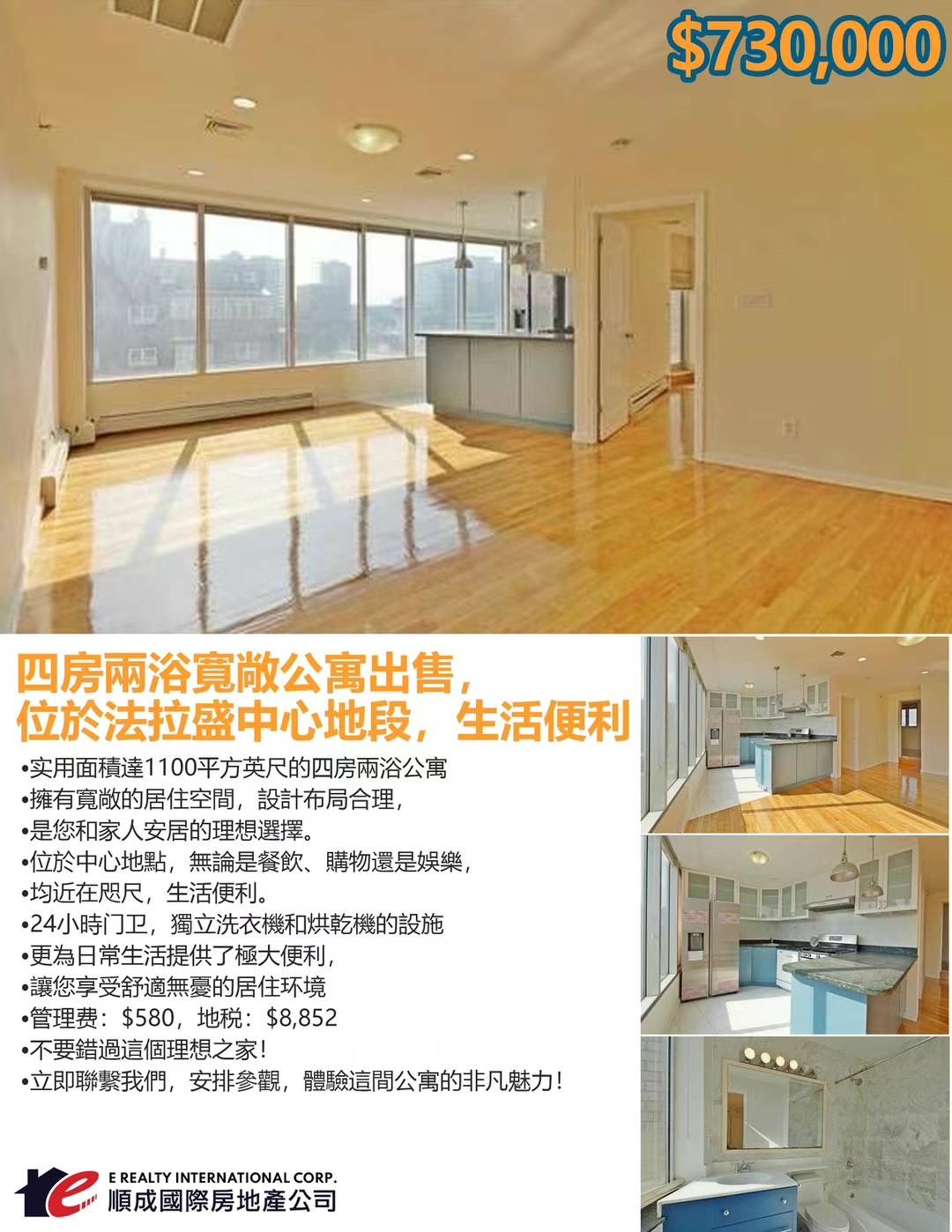 纽约法拉盛豪华康斗出售Flushing Luxury Condo NY 新上市法拉盛高档康斗出售法拉盛豪华康斗独家预售买卖 🍀四房兩浴寬敞公寓出售🍀,首次看房时间1/1/1025 下午2点🥳需预约