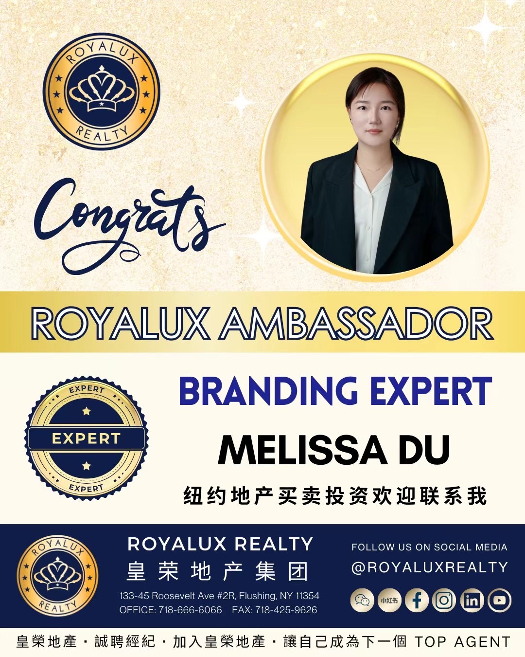 New York Top Real Estate Agent纽约法拉盛著名地产经纪人纽约华人房地产公司纽约资深千万房地产经纪 🎉 2024年完美收官,很高兴荣获12月【皇荣地产销售精英】!感谢每一位客户的信任与支持!也祝大家新年快乐!🎊🤝 作为您的专属纽约地产顾问,我将为您提供最专业、贴心的服务。📩 欢迎访问我的个人网页洽谈合作:Royaluxors.com/melissadu