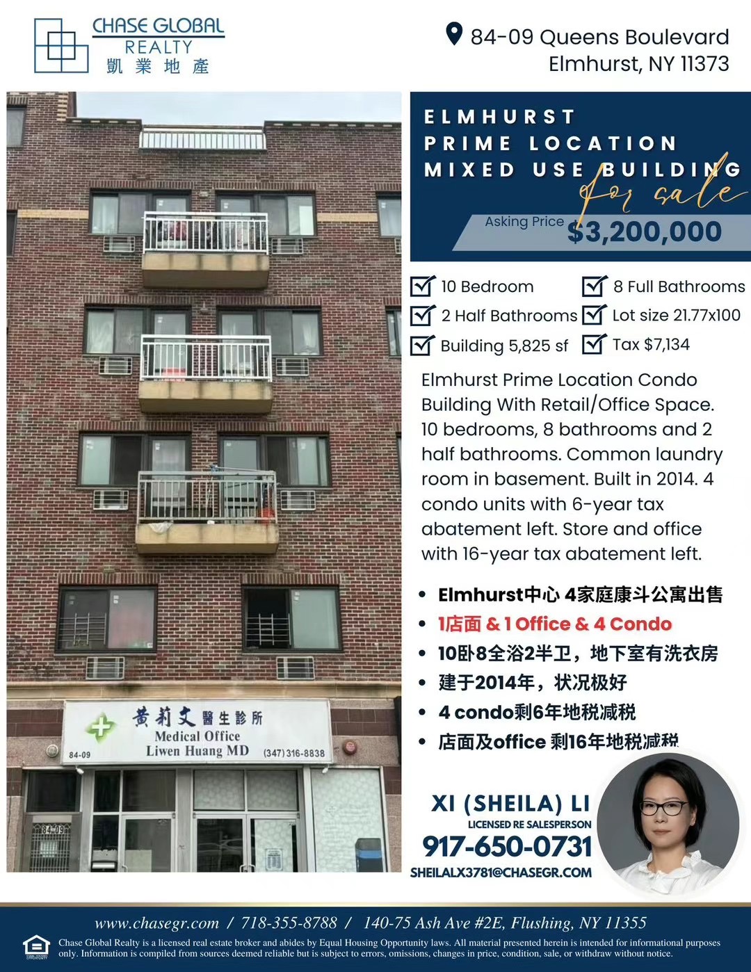 纽约艾姆赫斯特豪华公寓出售Elmhurst Coop NY新上市艾姆赫斯特高级合作公寓大楼出售艾姆赫斯特高大上公寓独家出售买卖 Elmhurst中心 商住大楼出售整栋$320万,也可分开出售