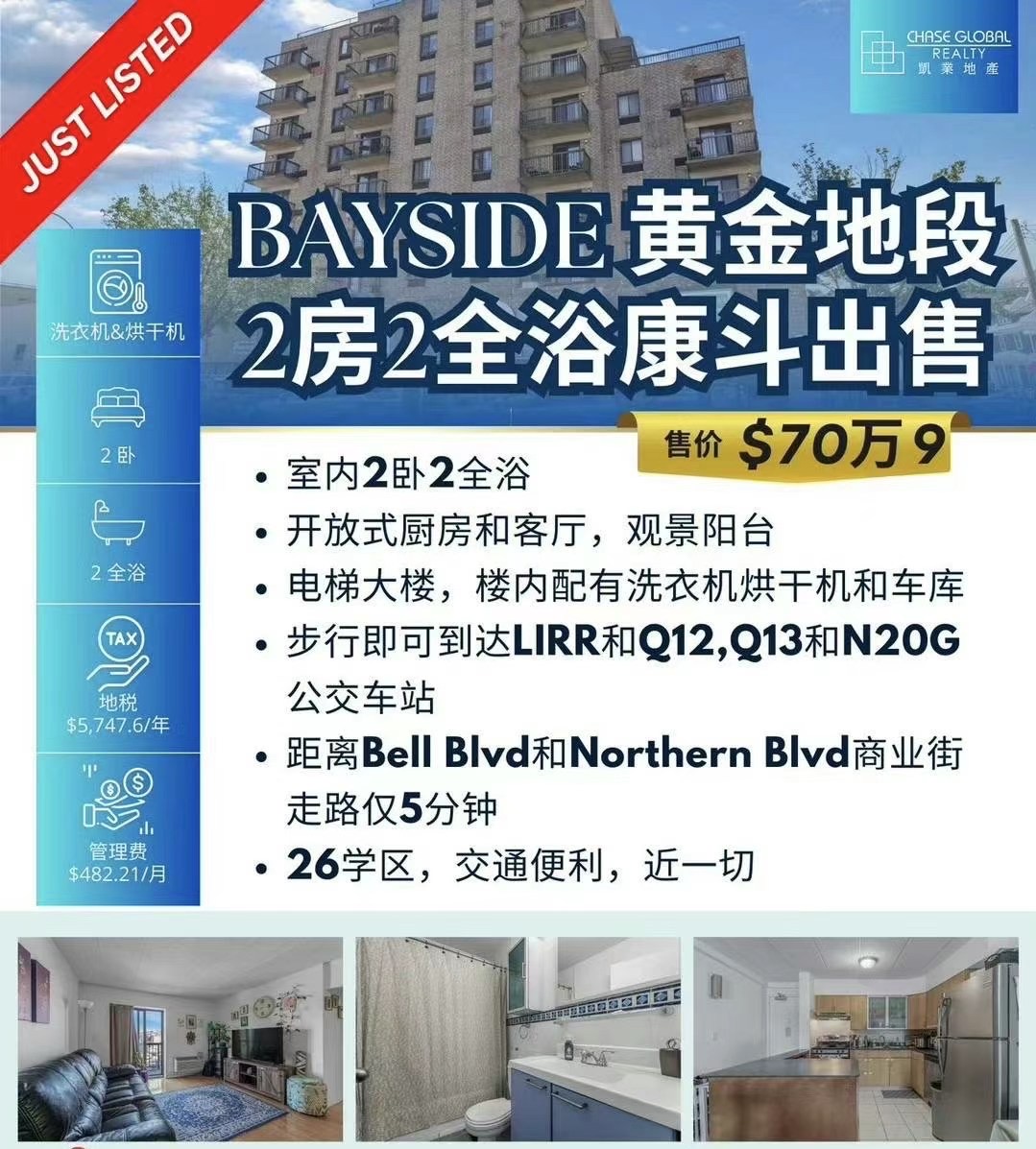 纽约贝赛房子出售Bayside NY新上市 贝赛房屋出售贝赛豪华住宅出售独家代理买卖🔥#凯业地产全新房源 贝赛黄金地段2房2浴康斗出售🔥