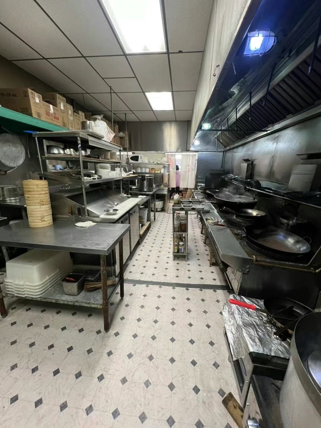 有walk in cooler和五个冻柜以及两个饮料柜等现成设备